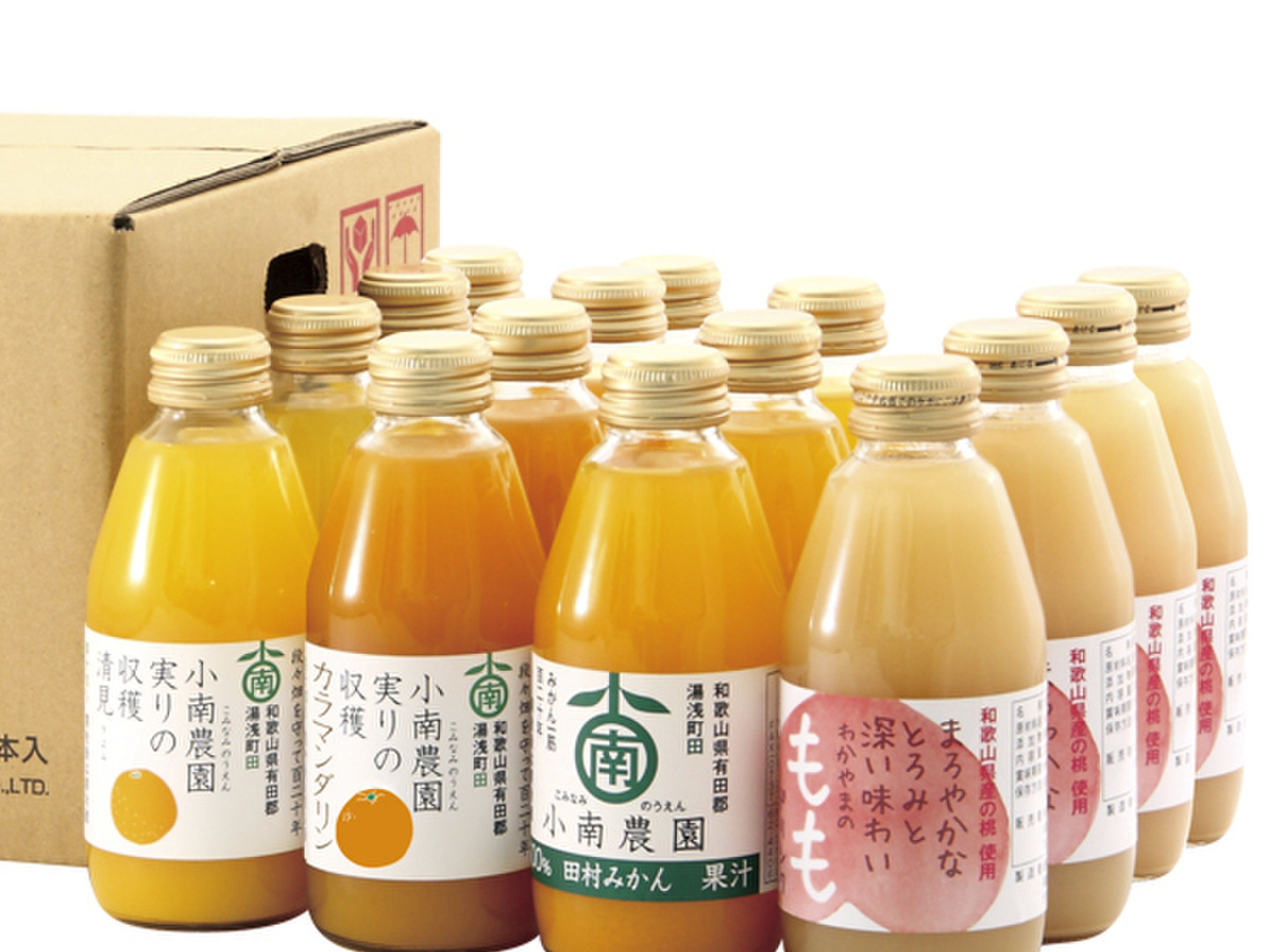 和歌山県産4種のフルーツジュース15本セット (田村みかんジュース、清見ジュース、カラマンダリンジュース、白桃ジュース)「熨斗対応可」【母の日】