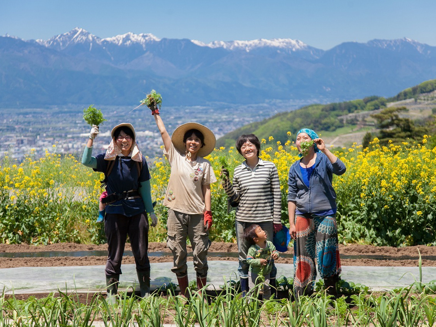 アルプスが一望できる、空に近い畑で育った野菜たち。農薬や化学肥料は使わず、肥料は植物性のみです。自然の雨と寒暖差の中で健やかに育った野菜は、野菜本来の甘みや滋味豊か!生きる力にあふれた野菜をいただくことで、心も身体も元気をもらえます。