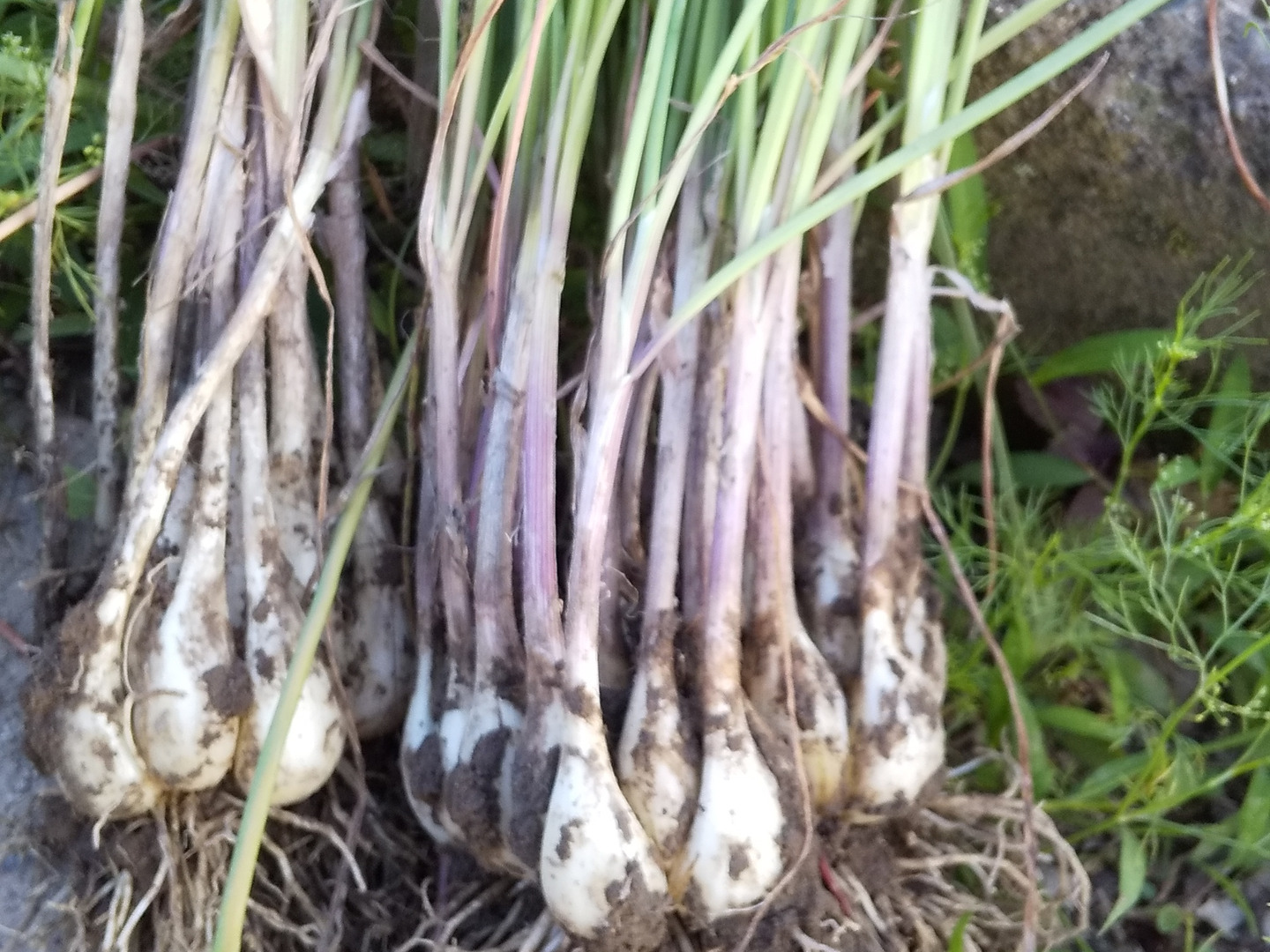 真夏の暑い時期に畑を耕し畝をたて、らっきょう1つずつを手植えすると、やがて新芽が顔をだし秋風とともに花を咲かせ、真冬の寒波を耐え凌ぎ春の日射しに伸長して、この時期に大きな実を結びます!