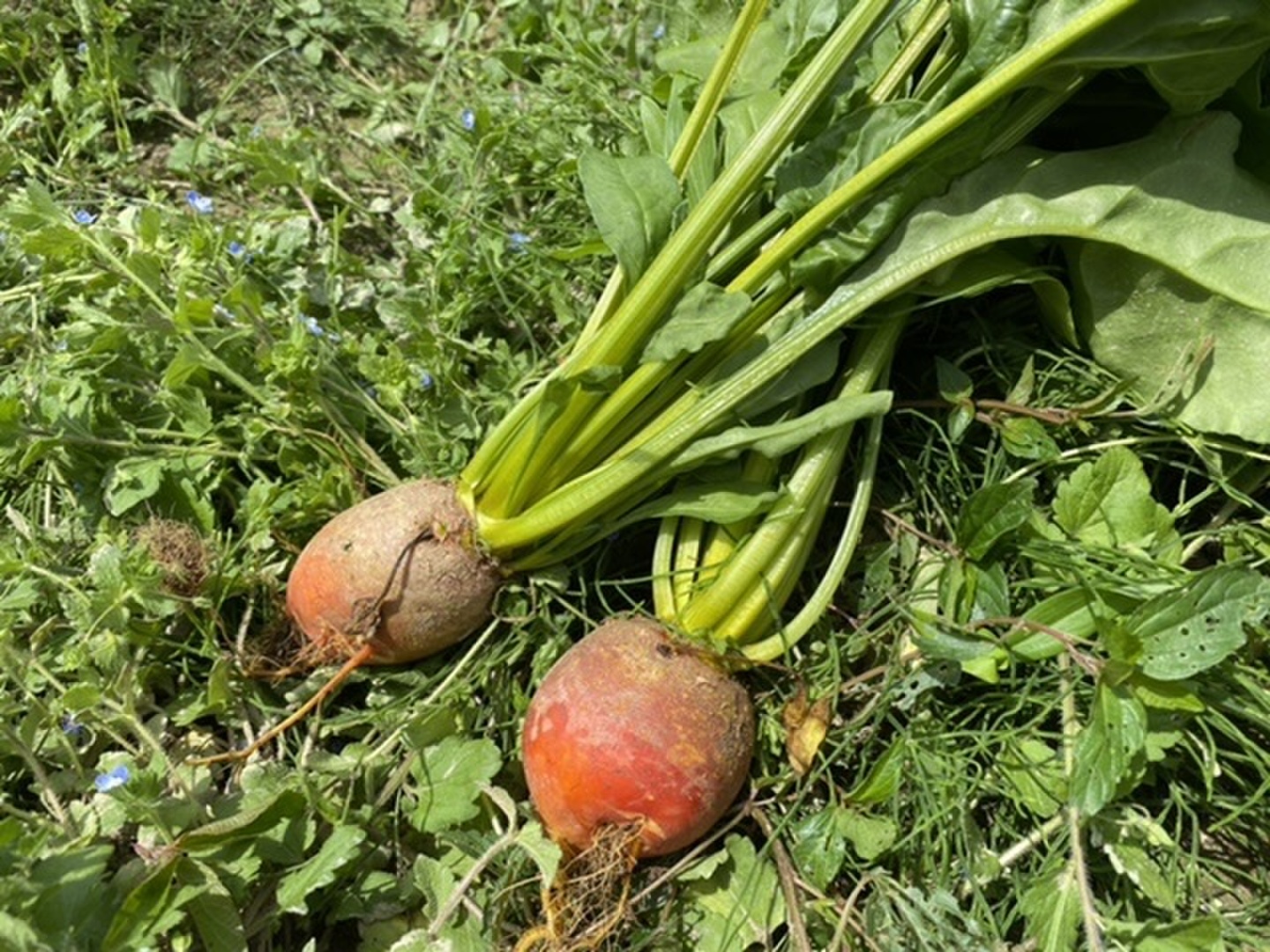 見た目は赤かぶに見えるビーツですが実はほうれん草の仲間。その鮮やかな赤い色はポリフェノールを多く含んでいる証。そのほかにも鉄分やミネラルを多く含んでいて、血圧低下、老化防止、認知症の予防、美容効果も期待されているスーパーフードです。柔らかな食感とほのかな甘みがあります。スムージーなどにして栄養価と鮮やかな色を楽しんでいただくのがオススメです‼️