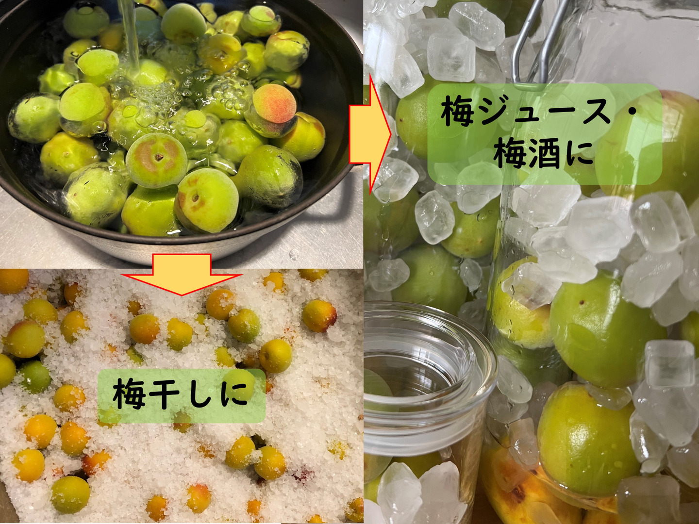 ①南高梅のヘタを爪楊枝などで一つずつ取り除き、水でよく洗って、乾かします