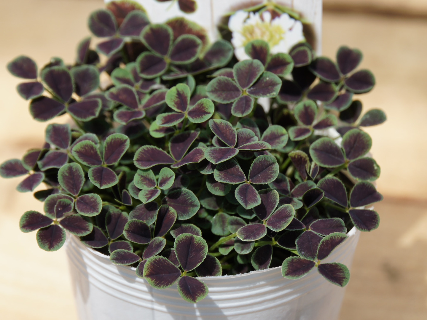 黒葉にグリーンの縁取りが鮮やか。単品でもかわいらしく、また寄せ植えにも使いやすいです。