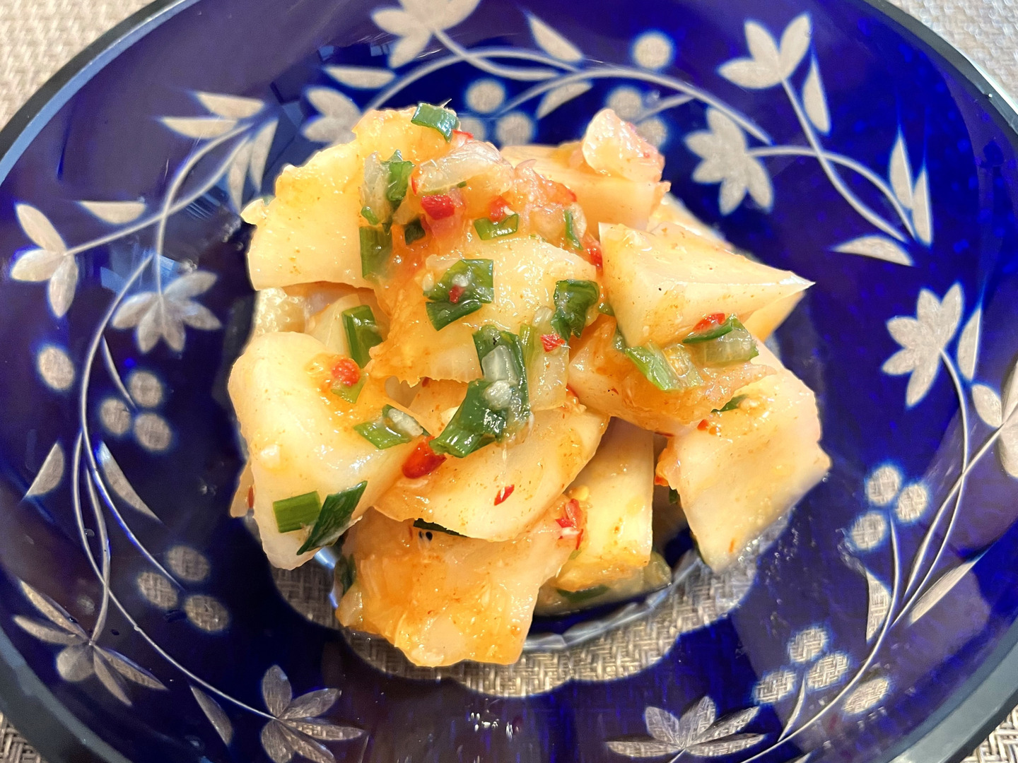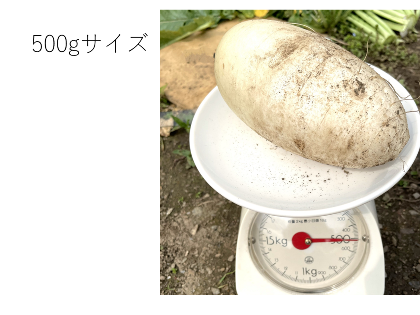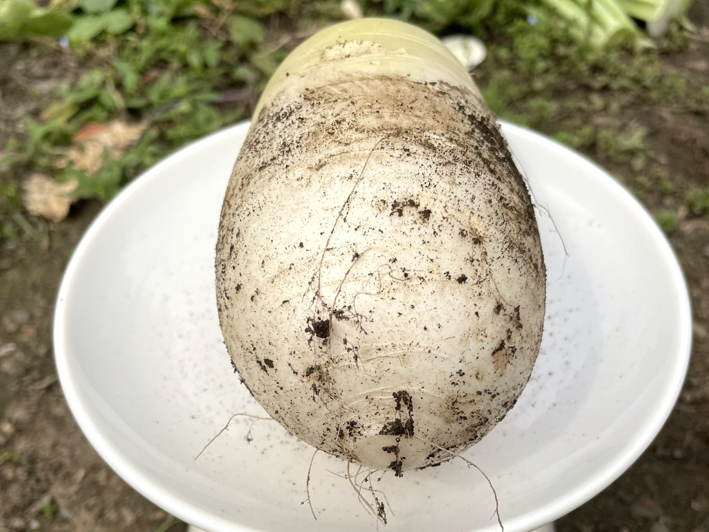 一般的な大根よりも小ぶりで、肉質は硬めです。硬めの歯ごたえを生かしたカクテキ(ダイコンキムチ)作りもお勧めです!
