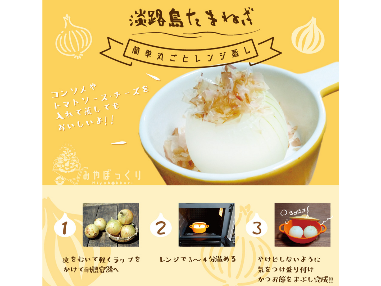 今までわたしは、淡路の玉ねぎを甘いとは思ってましたが玉ねぎを定番の丸々レンジで加熱して、かつお節とポン酢をかけて食べてみると あれ?こんなにおいしかったっけ?っとびっくりしましたΣ(゜Д゜)