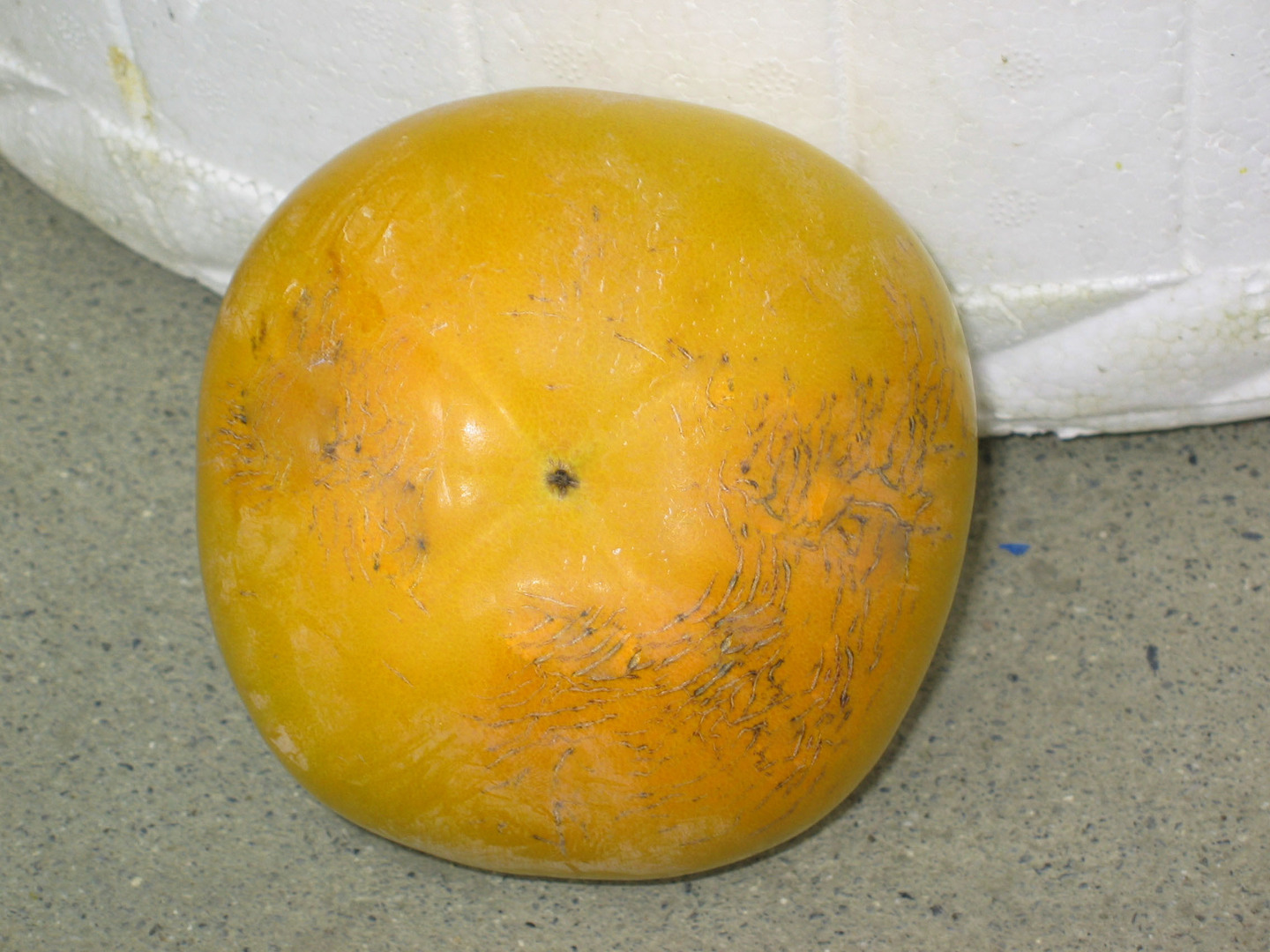 見た目は、黄色く黒いスジ(条紋)の模様【写真2枚目】が入ったものもあり、あまりよくありませんが、さわやかな甘さの柿で美味しいです。