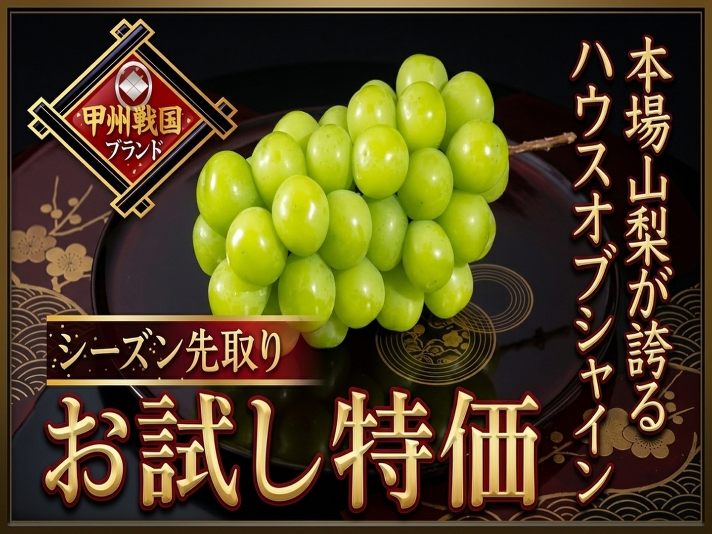 【フルーツ王国山梨】シャインマスカット本場の旬を全国に先駆けて最高糖度でお届け!甲州戦国ブランド『ハウスオブシャイン』お試し特価キャンペーン約1キロ☆朝どれ高級ぶどう家庭用・ギフトにも【6月下旬予約】