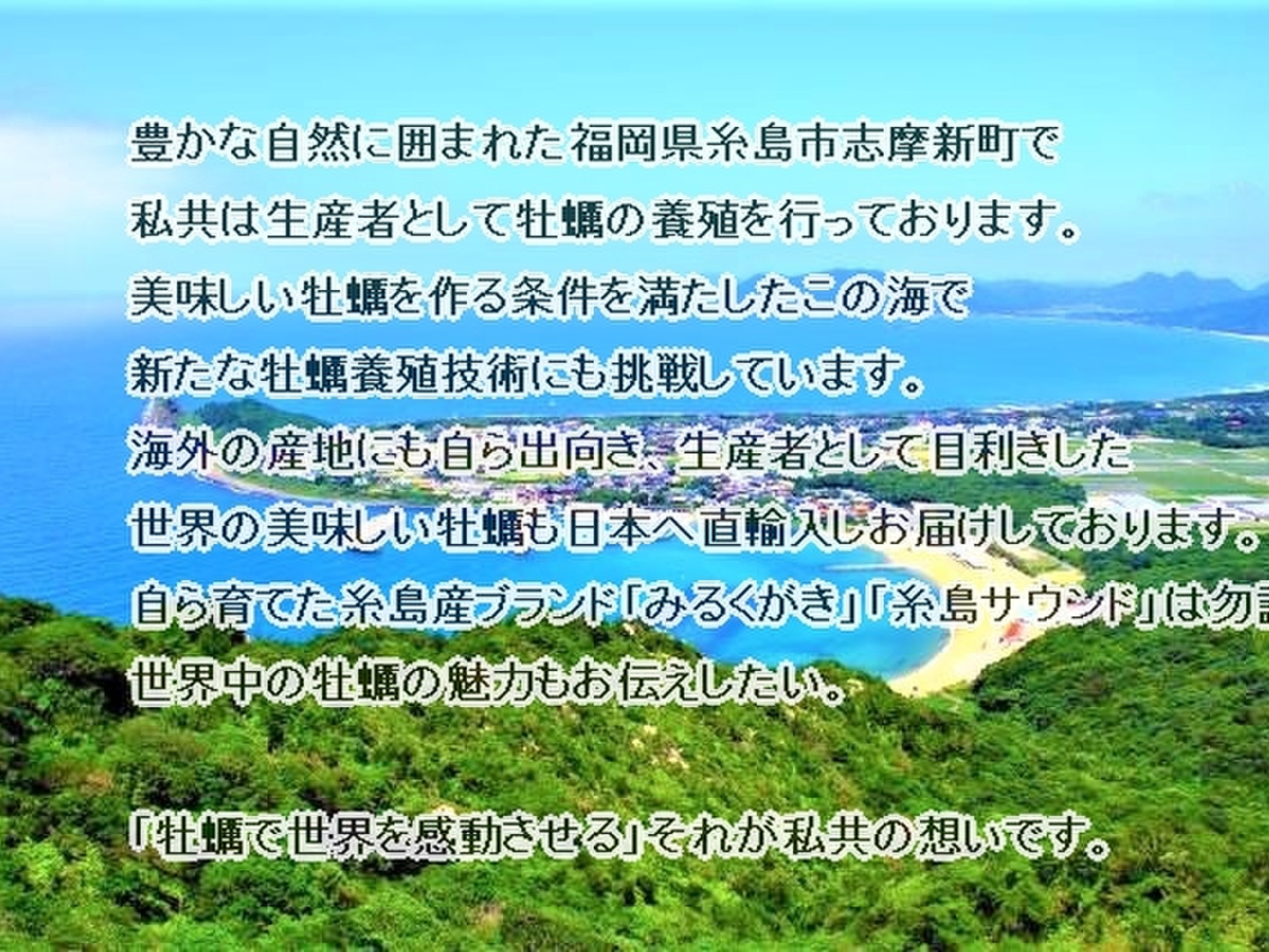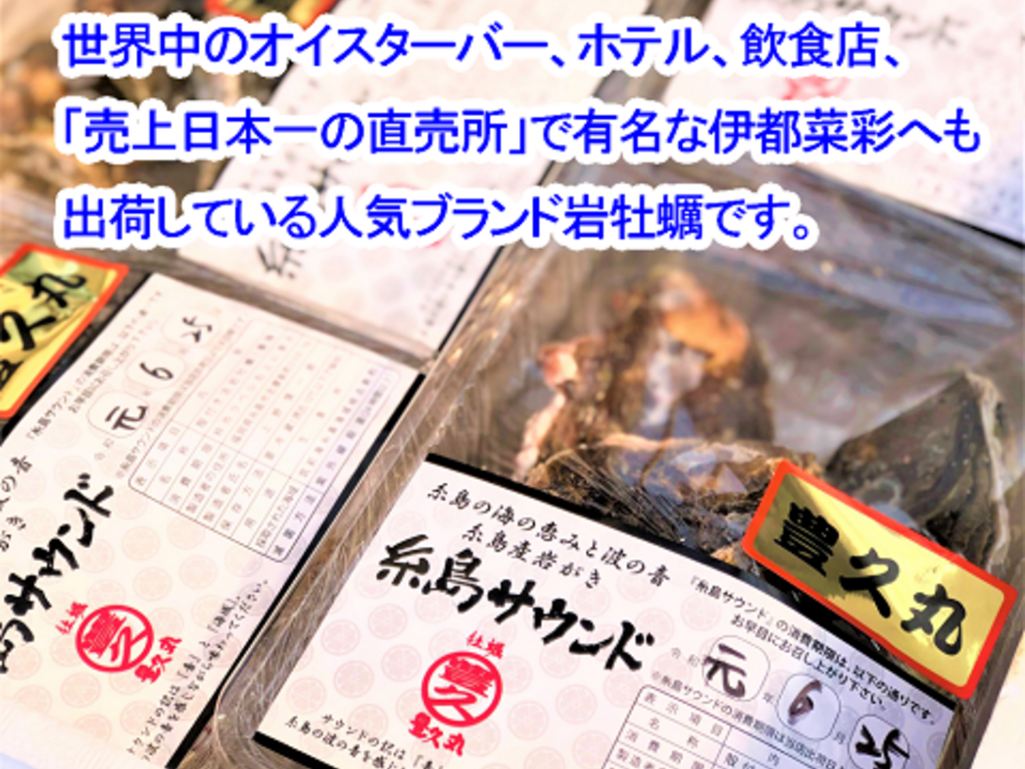 糸島サウンドは、福岡県の糸島で育った岩牡蠣です。 山々から流れ出た天然のミネラルを栄養にして育ったプランクトン豊富な海で養殖している為、旨味・甘み・クリーミーさのバランスが絶妙な岩牡蠣です。 また、全国のオイスターバーでも人気の岩牡蠣ですので、ぜひ一度お試しください。