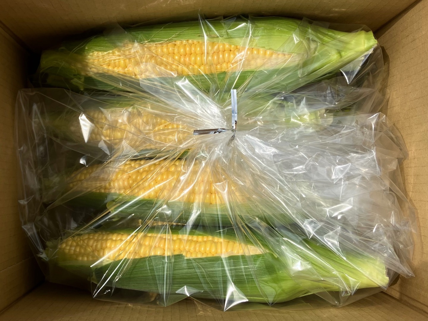 また、「少しでも新鮮な状態で食べてほしい!」という思いから、鮮度の落ちやすいとうもろこしを特殊な鮮度保持フィルムで包装しております(写真⑥)。そのため、輸送時に鮮度が落ちず、穫れたてそのままでお届けできます。