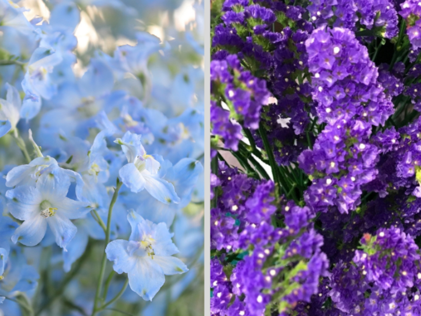 デルフィニウム 水色とスターチス ピリカブルー(紫色)のコラボセット商品です。