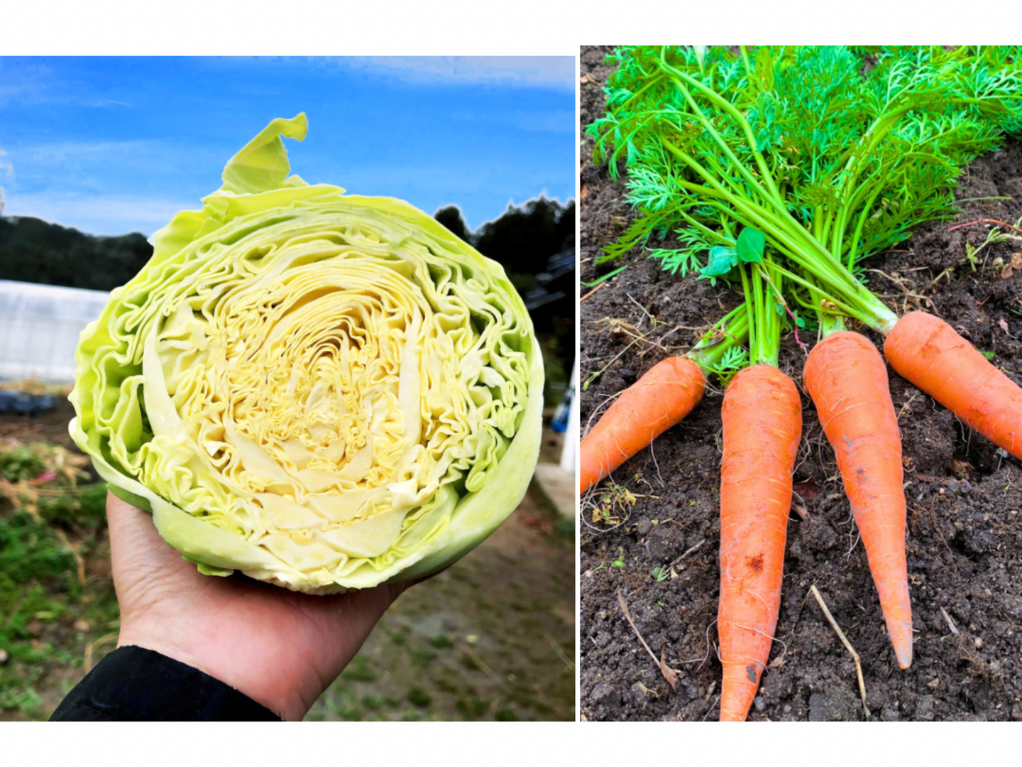2セ【数量限定】農薬不使用の旨キャベツ!今だけの柔らかい春キャベツとミニキャロットと玉ねぎを是非!