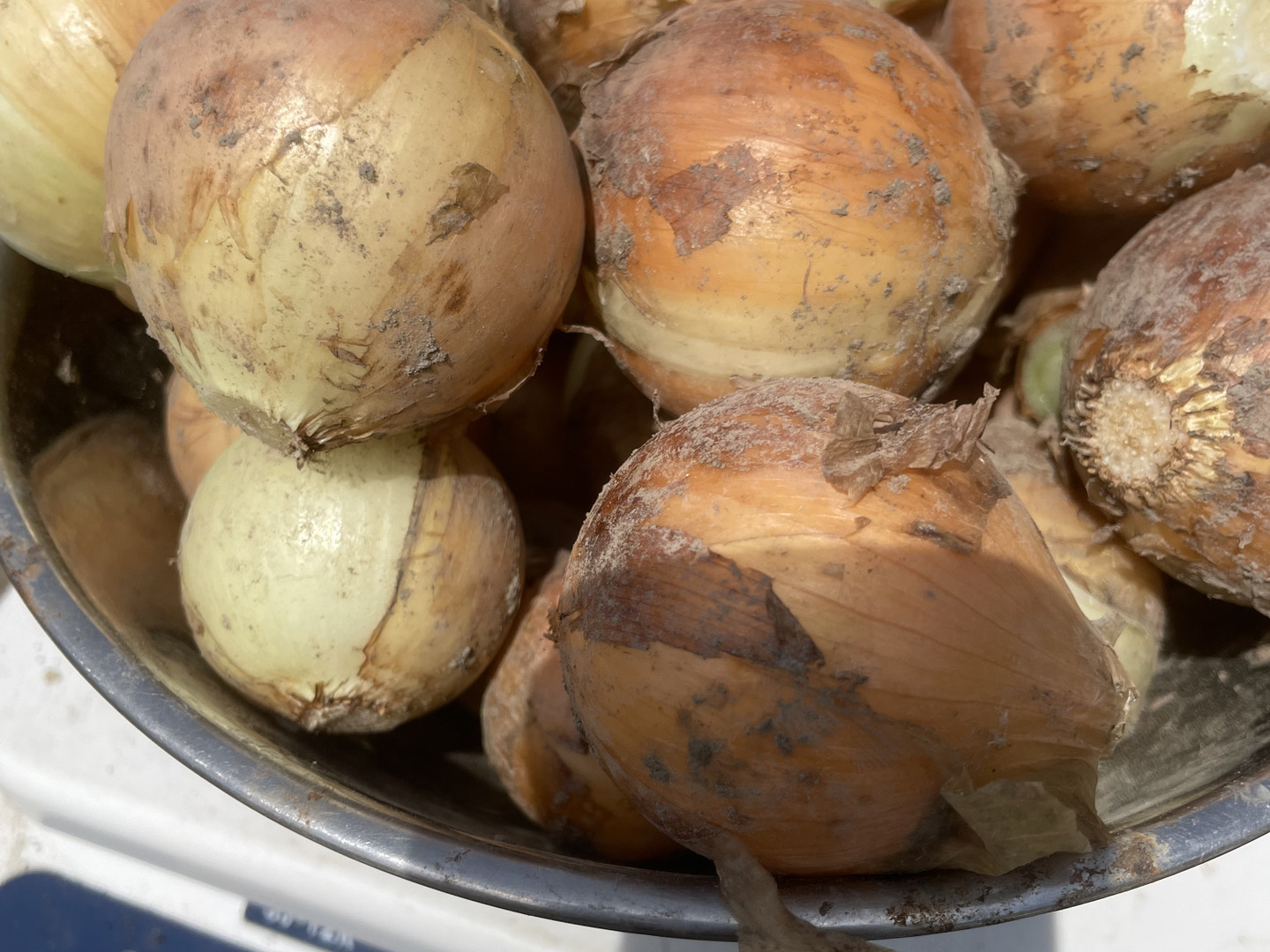 - たまねぎはスープに最適なサイズ。皮を剥いてそのままお鍋に!