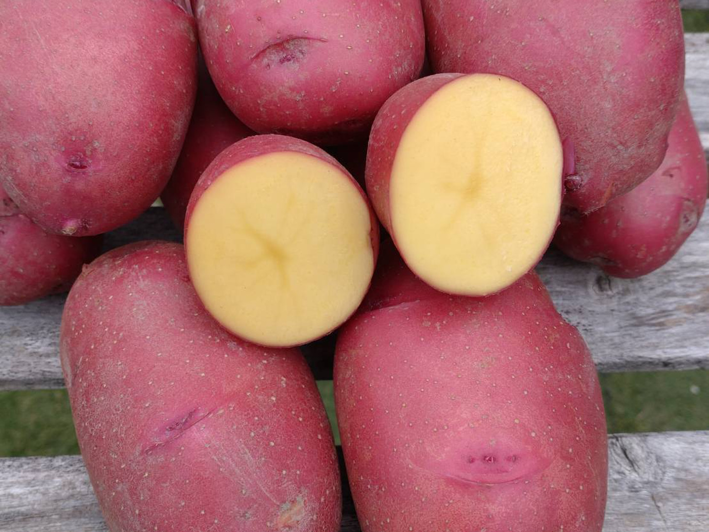 レッドムーンは、皮は赤く楕円形で中身は黄色く優しい甘みがあります。