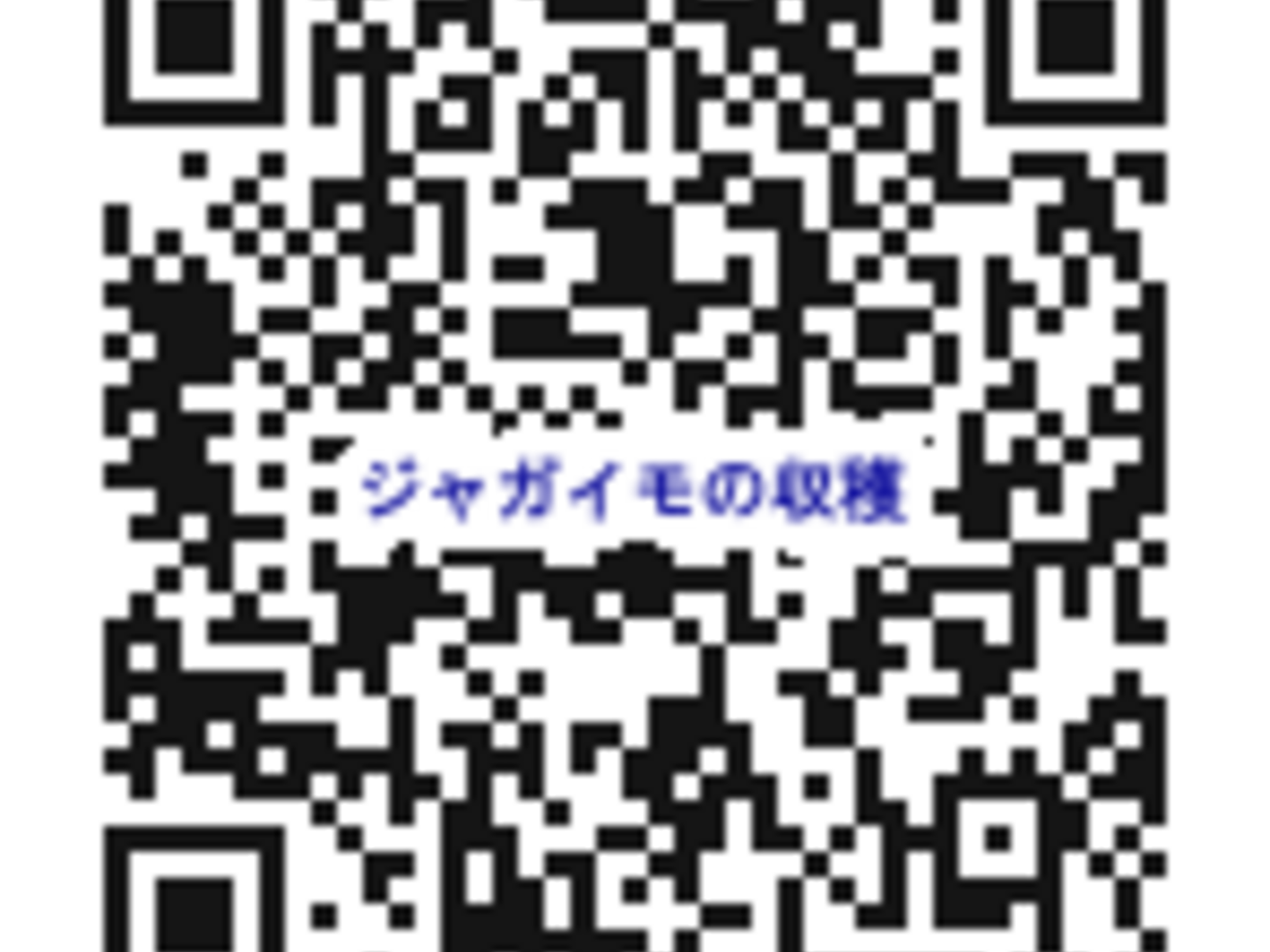 6月のジャガイモは1年最初に採れるジャガイモで「新ジャガ」とも呼ばれます。ジャガイモの収穫は掘るのが大変です。当社では数年前からジャガイモ掘り上げ機を導入しました。QRコードにスマトフォンをかざすと、ジャガイモを掘っている様子を見ることができます。