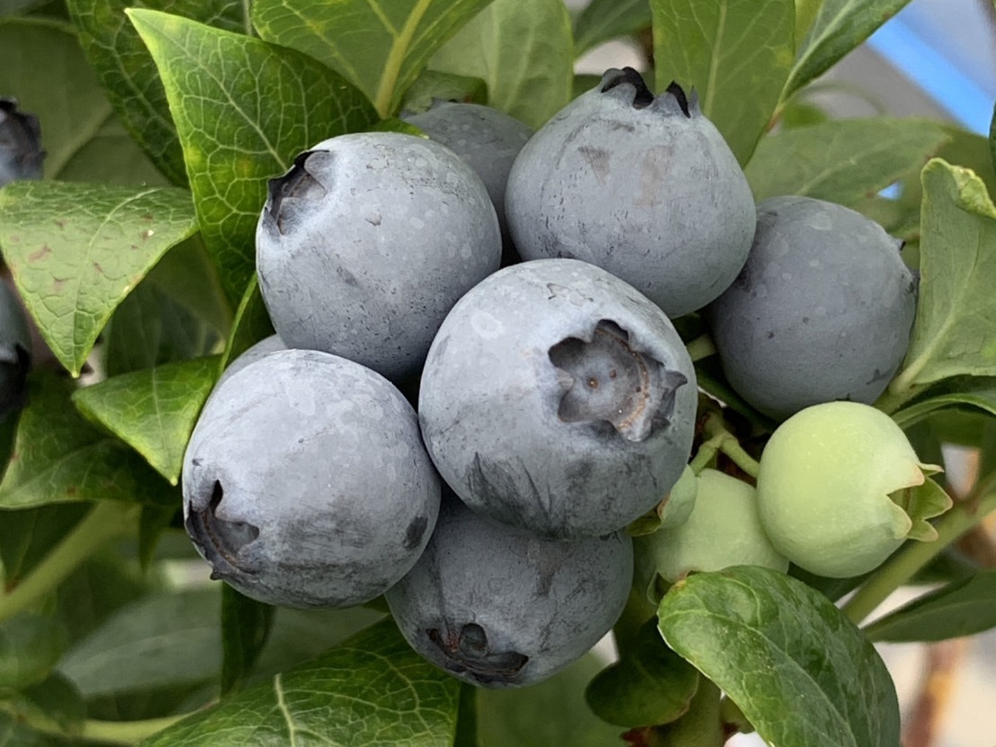 また、ブルーベリーに付いている白い粉はブルームと言い、農薬ではありません。ブルーベリー自身が果実を守るために分泌しています。