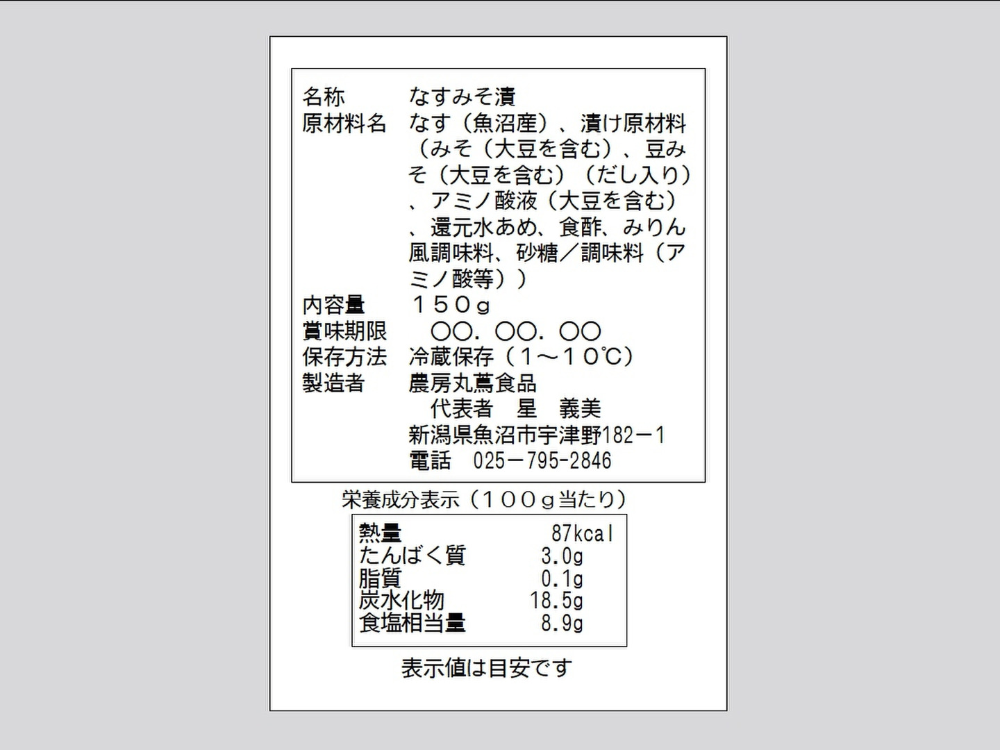 | 内容 | なす漬け(2袋)となすのみそ漬け(I袋)です | ||||||