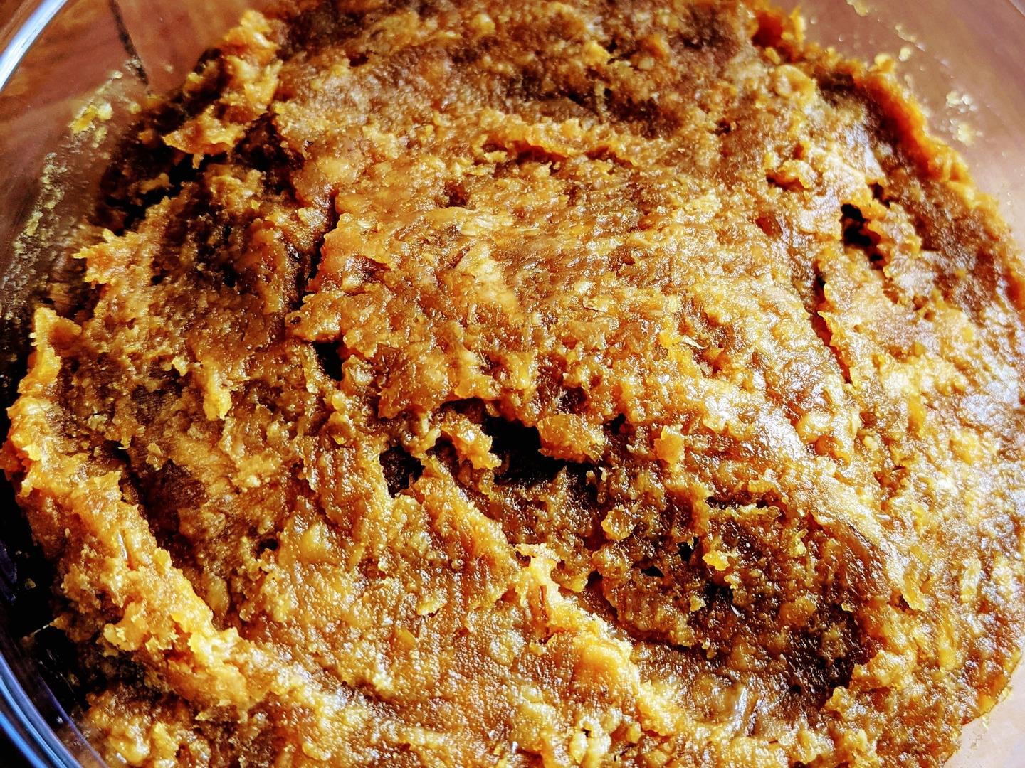 そして、その大豆を使い「味噌」を手づくりしようと思い立ちました。老舗のお味噌屋さんにお話を伺い、さまざまな資料をあたり、ともに取り組む仲間を見つけ、自宅離れの作業場をDIY改修し、保健所の許可を受け、味噌を仕込み、材料から自家製の「てづくりみそ」が仕上がりました。