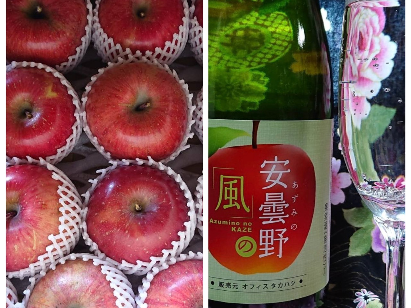 {予約販売}サンつがる林檎約1.5kgと辛口シードルのセット 安曇野の風750ml。爽やかな切れ味雑味無し女性のお客様に特に支持を賜っています。サンつがるりんごは果汁が多く甘味を引き立てる酸味が魅力。