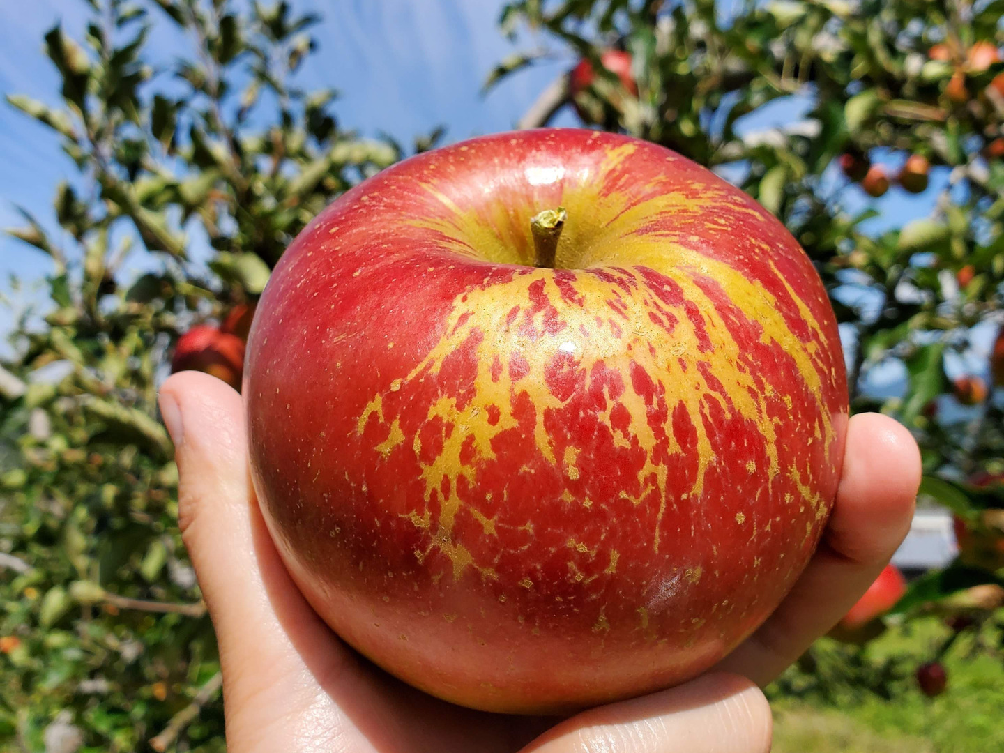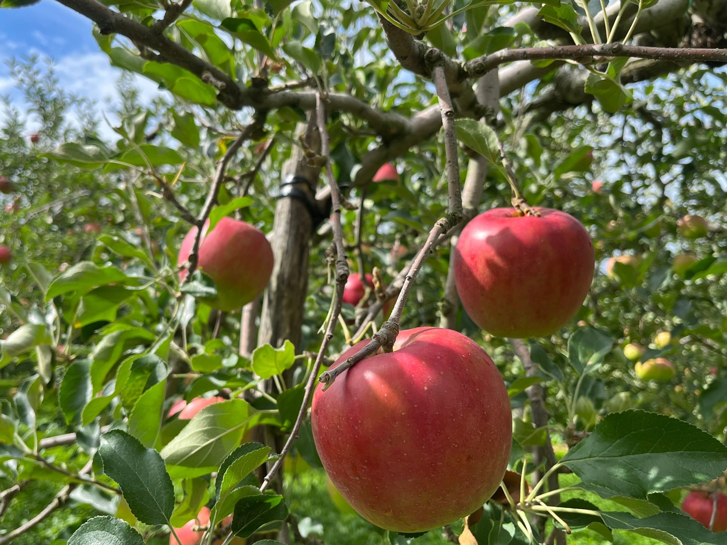 日当たりの良い傾斜地に畑があるので日照時間が長く、とてもおいしいりんごが収穫できます。