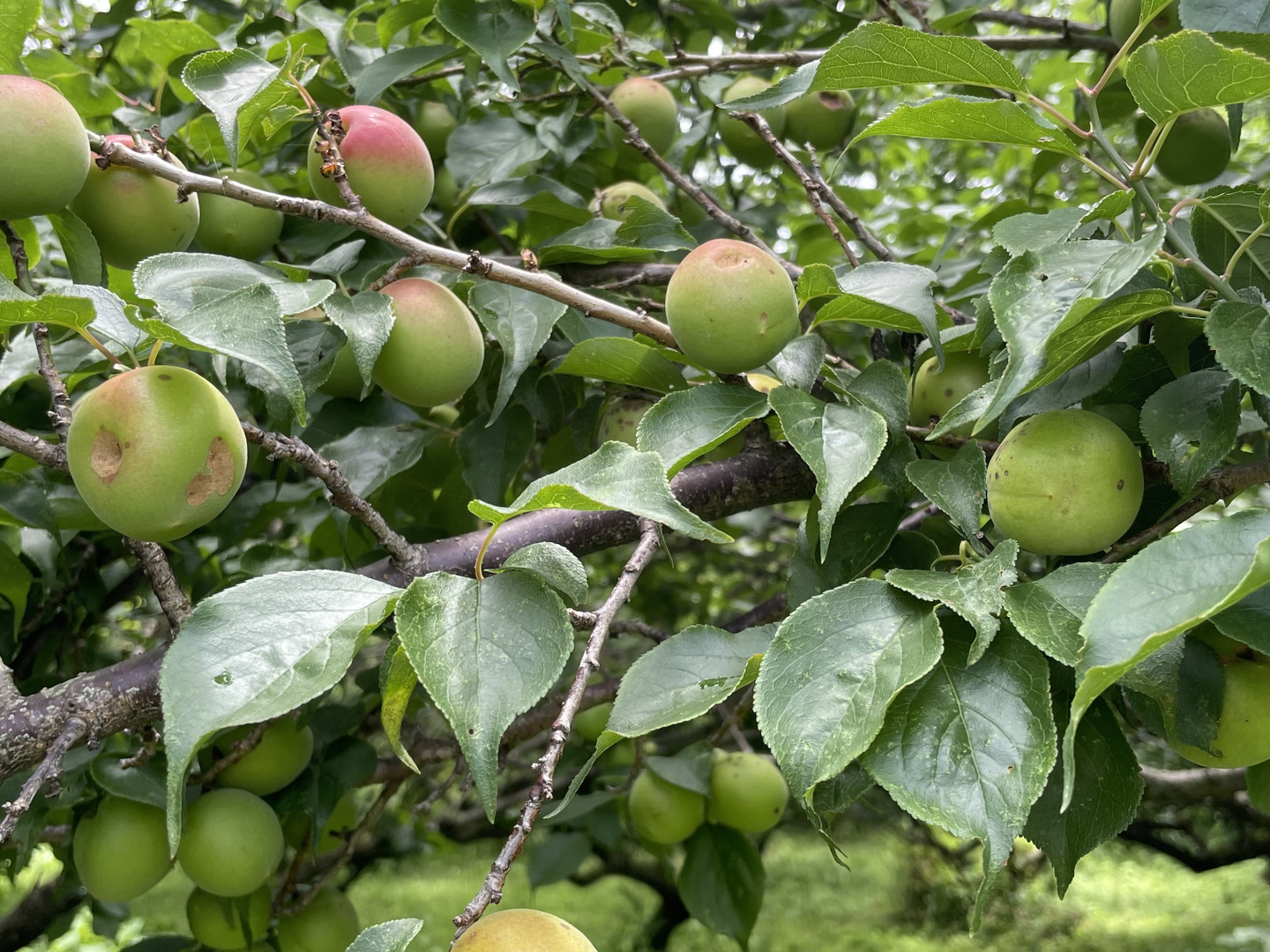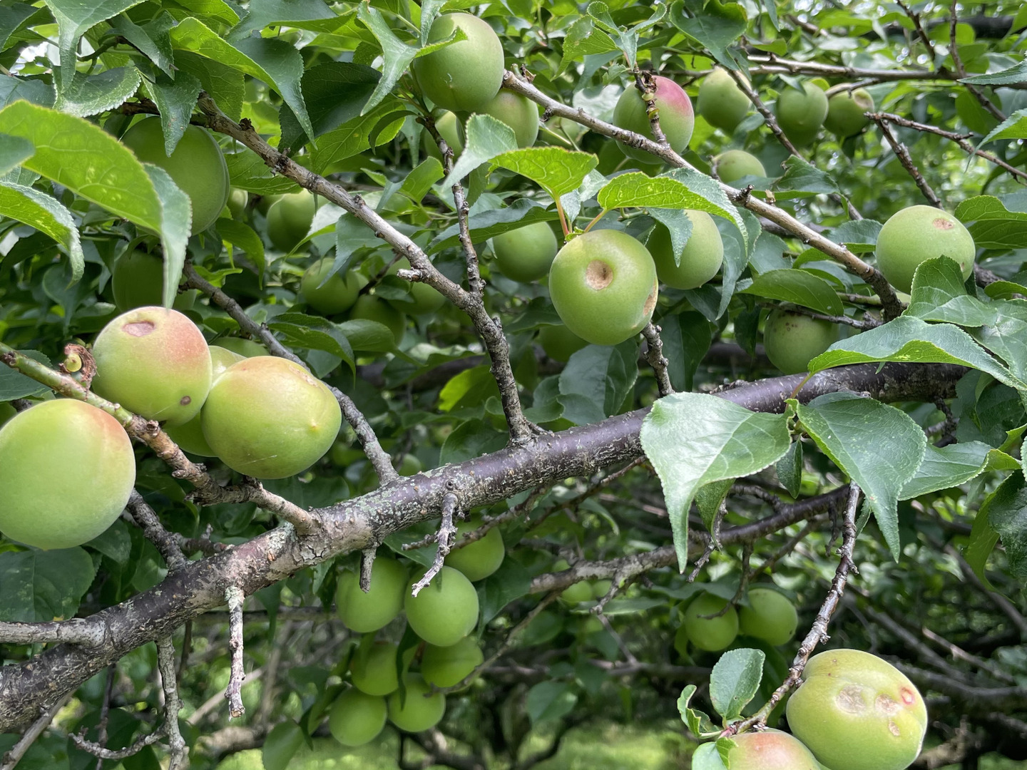 こちらは栽培期間中農薬不使用、除草剤、化学肥料は一切使用していない梅林で収穫を行なっております。