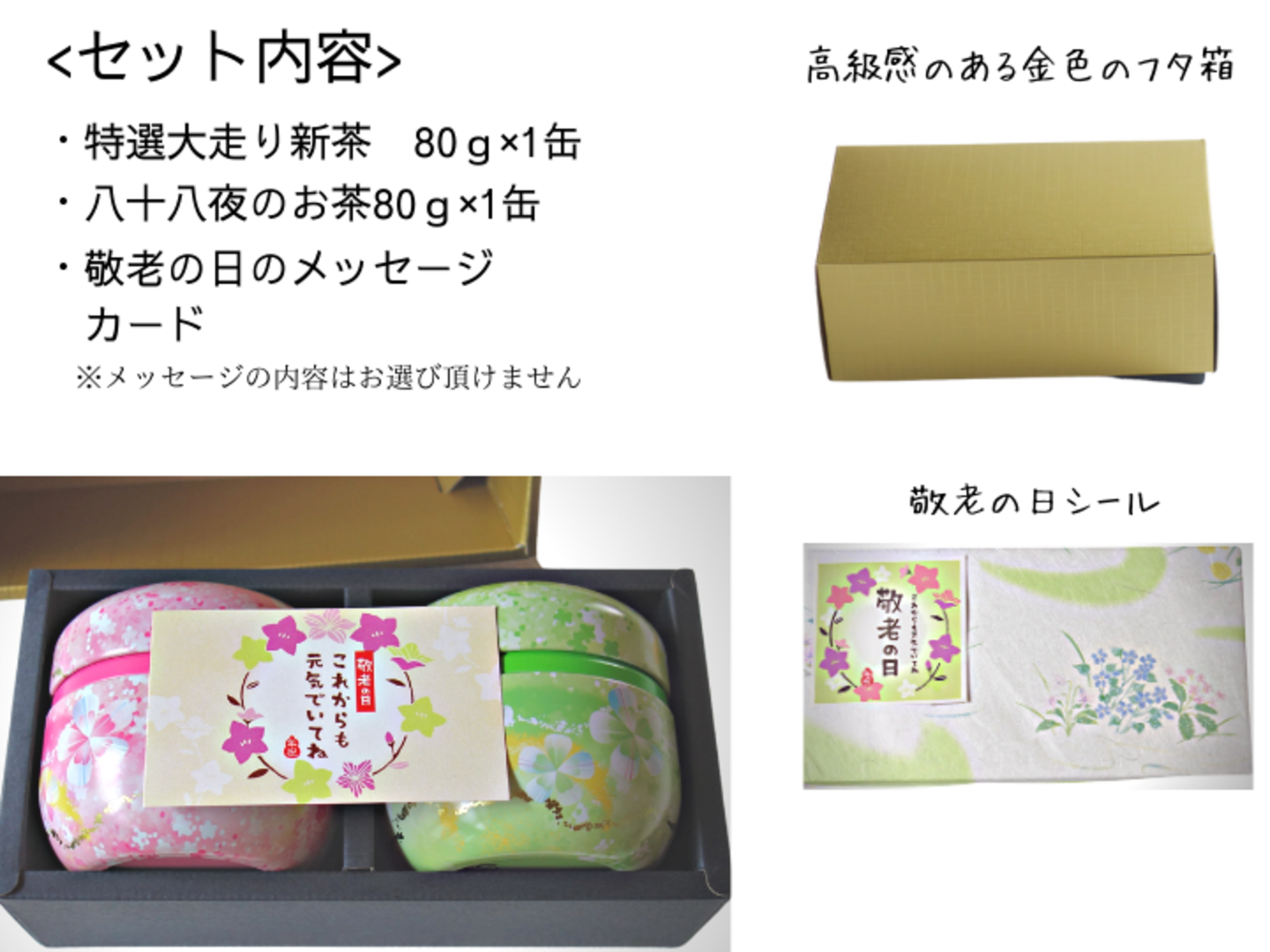 【敬老の日ギフト】特選大走り新茶80g×1 八十八夜のお茶80g×1 静岡県牧之原産 敬老の日メッセージカード付
