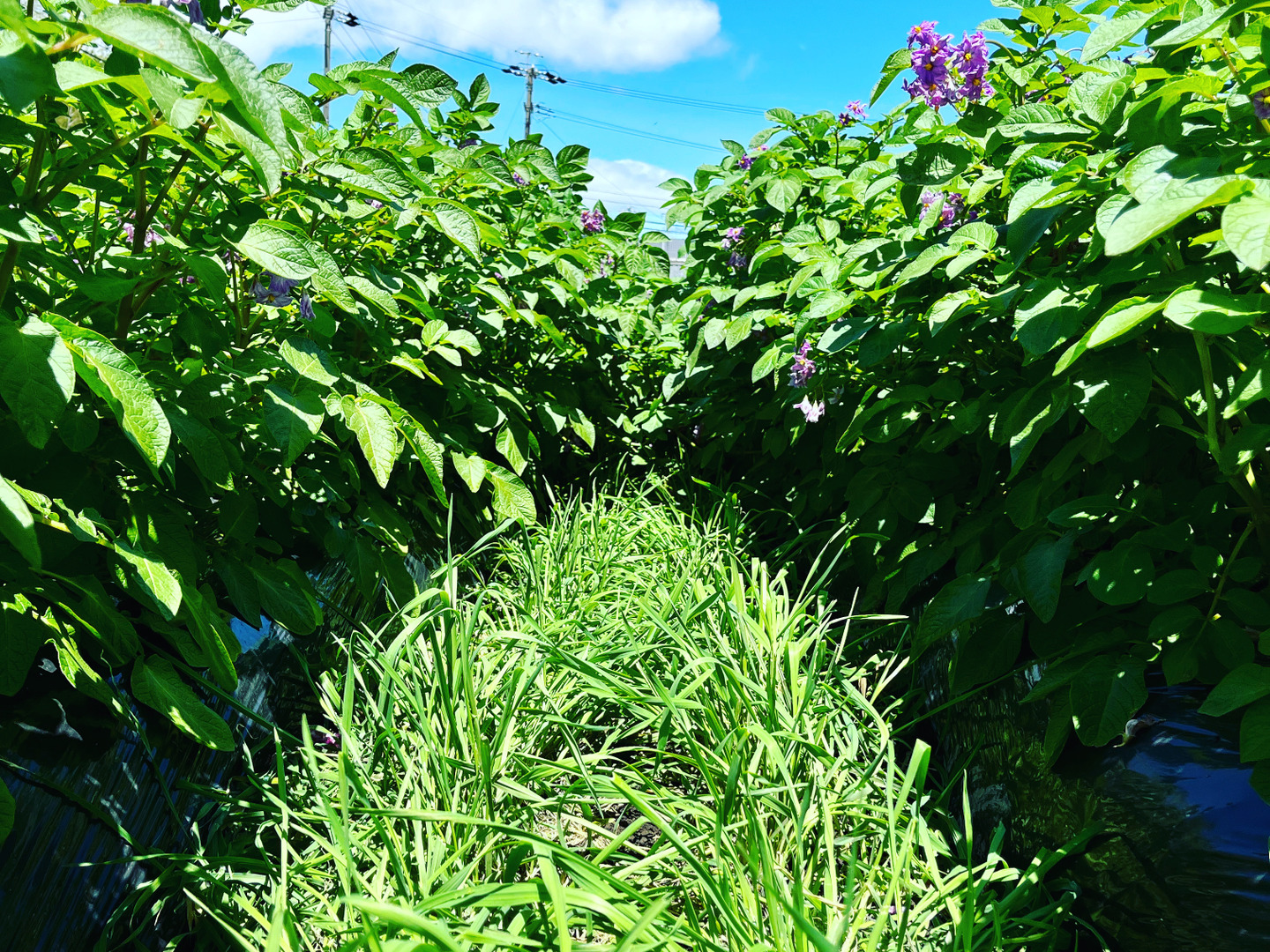 また、土壌環境を整えるためジャガイモ栽培中の通路でも麦を育てていました。
