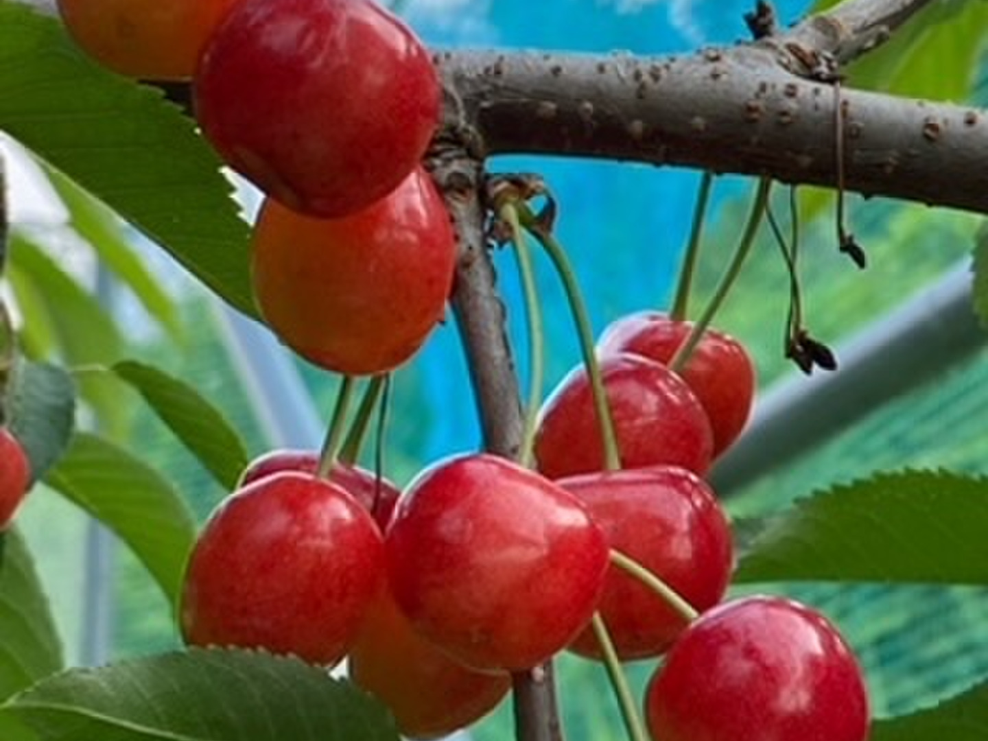 佐藤錦は、果実が柔らかくジューシーで、糖度が高く甘味と酸味のバランスがちょうど良い品種です。一粒食べるとプチっと口の中で弾けて、爽やかな甘さとほのかな酸味、ジューシーな果汁が口いっぱいに広がります!