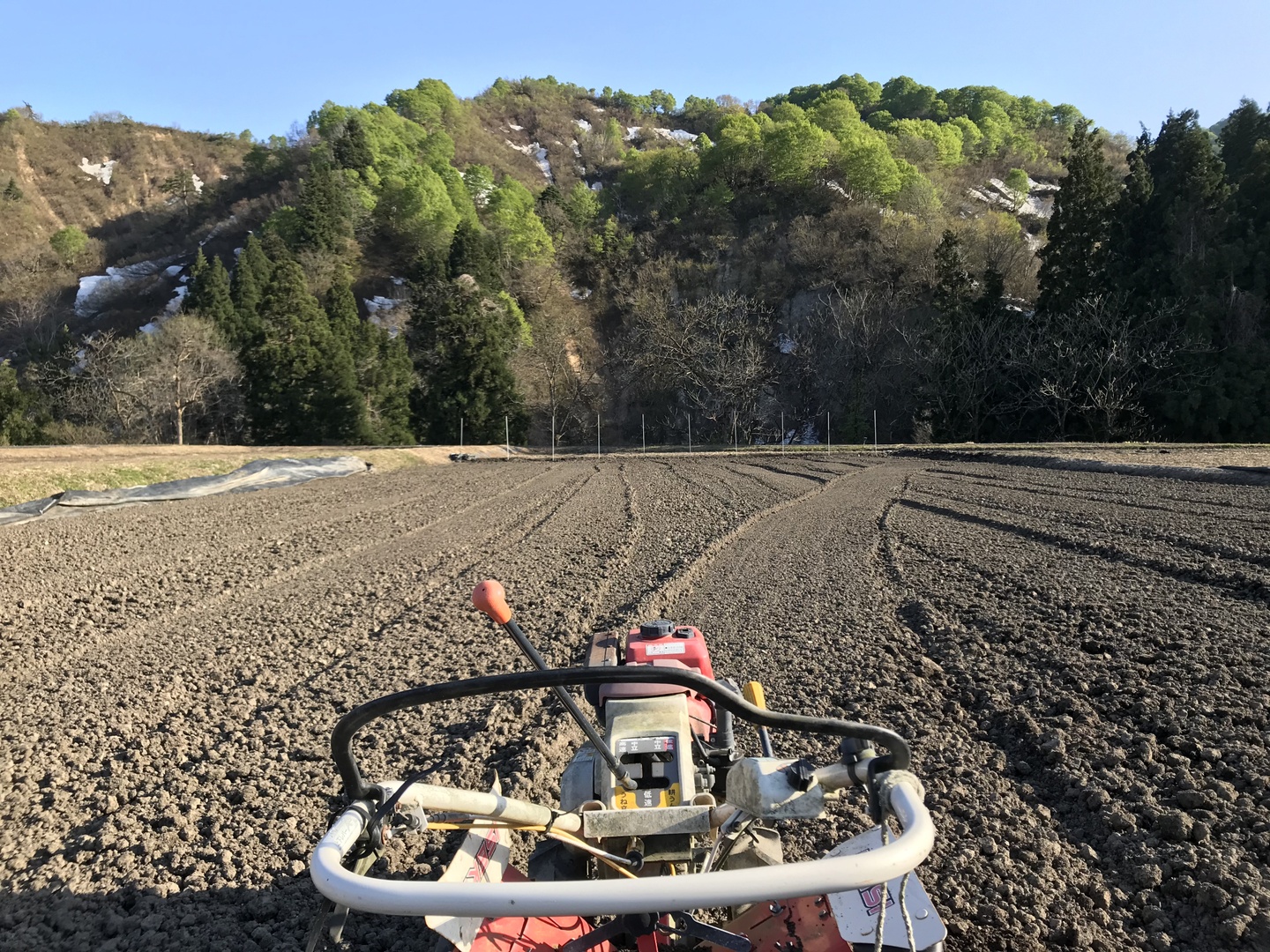 3月、もみ殻の炭をまき、なんとか雪を融かします。5月、苗を植えて、7月、なす漬けが始まります。