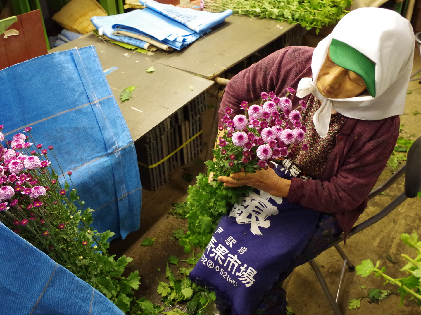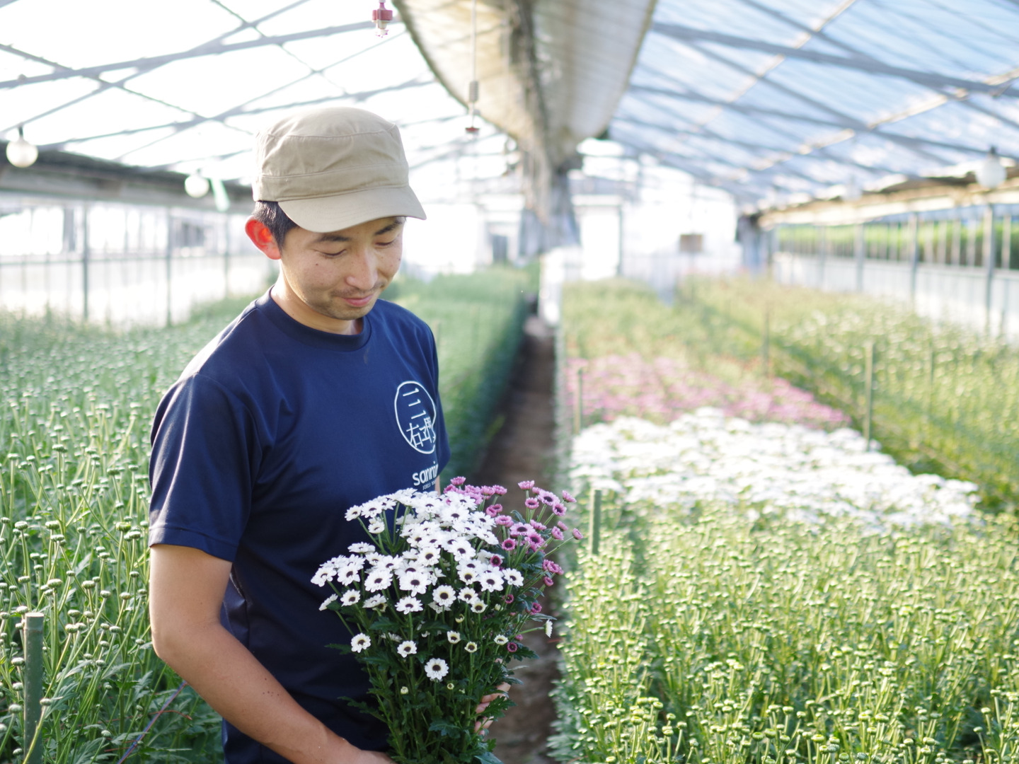 三右エ門が土づくりから真心込めて育てたマム(菊)と