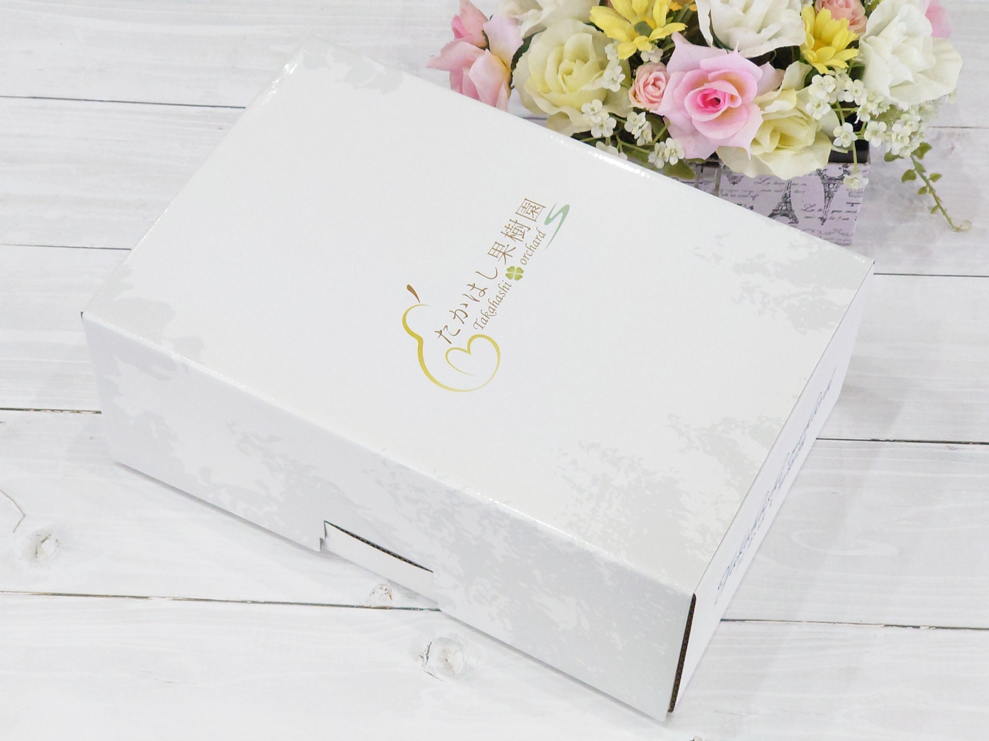 たかはし果樹園オリジナルの化粧箱にて皆さまにお届けいたします。