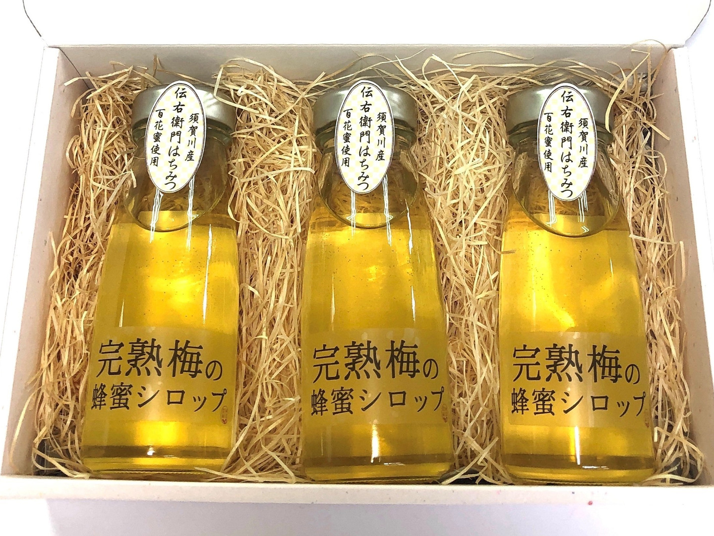 【夏ギフト】【お中元】阿部農縁 完熟梅の蜂蜜シロップ3本ギフトセット 福島県須賀川市の希少なハチミツ【伝右衛門はちみつ】使用 贈り物・贈答用に