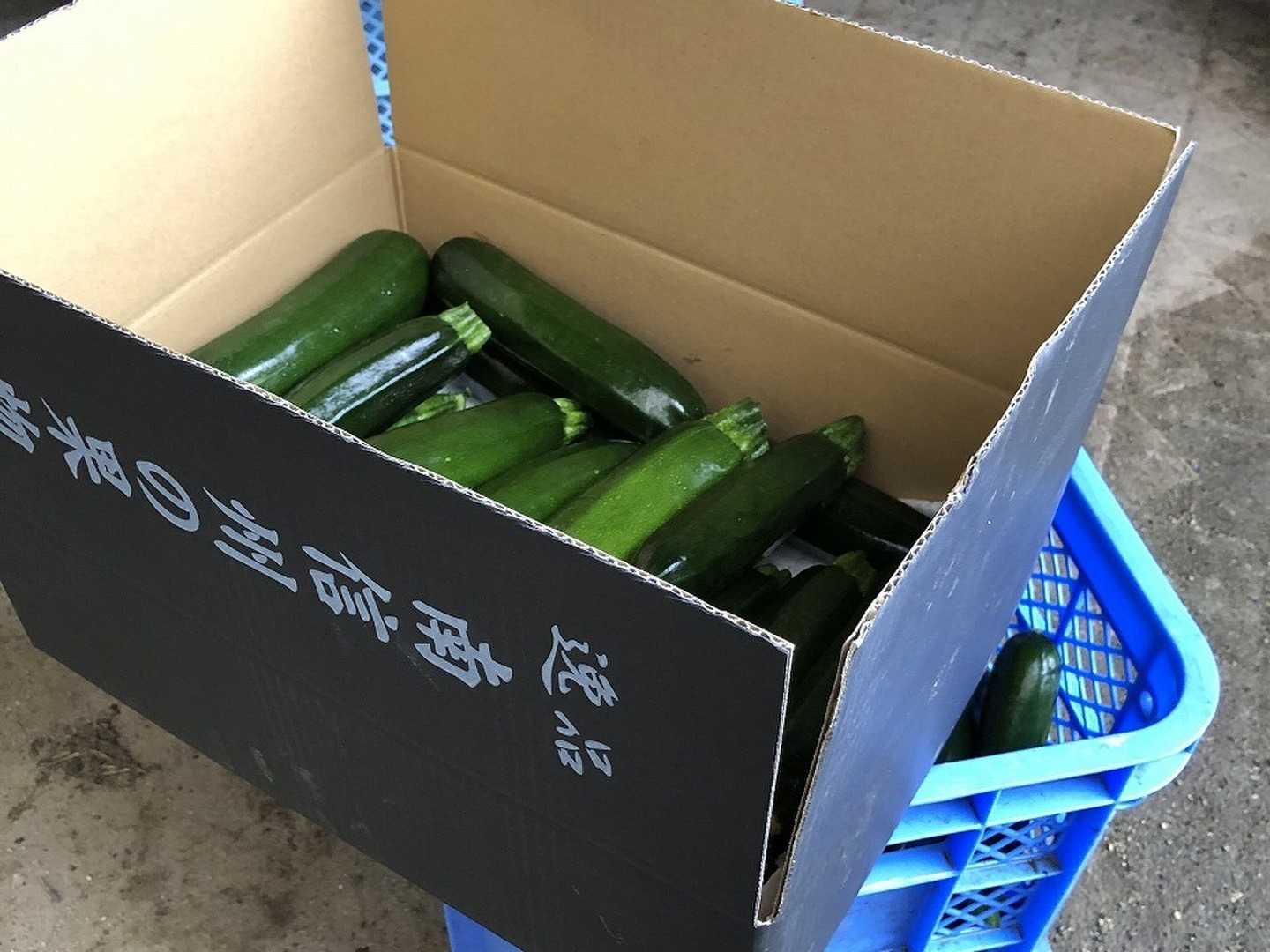 果物の箱で発送します。中身はズッキーニですのでよろしくお願いします。