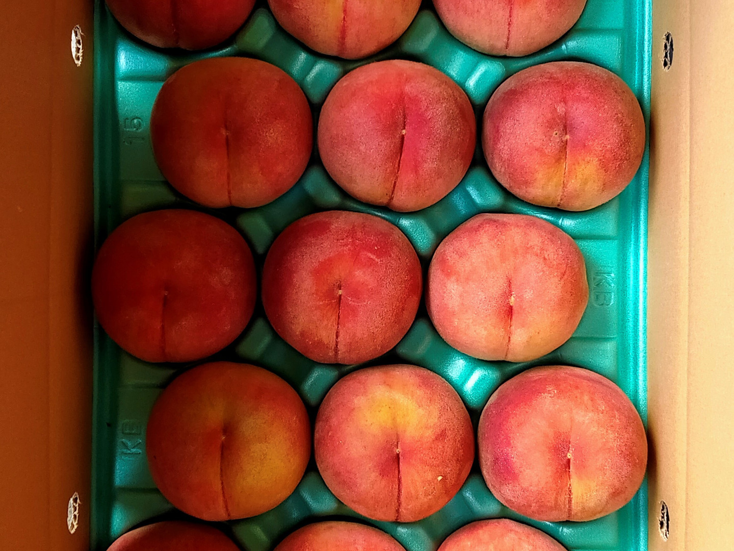 あかつきは果実の重さは250~300gくらいで、肉質は締まっていて緻密。やや赤みの差した乳白色の果肉が特徴です。たっぷり日光を浴びてきれいに色づいたものをお送りします。