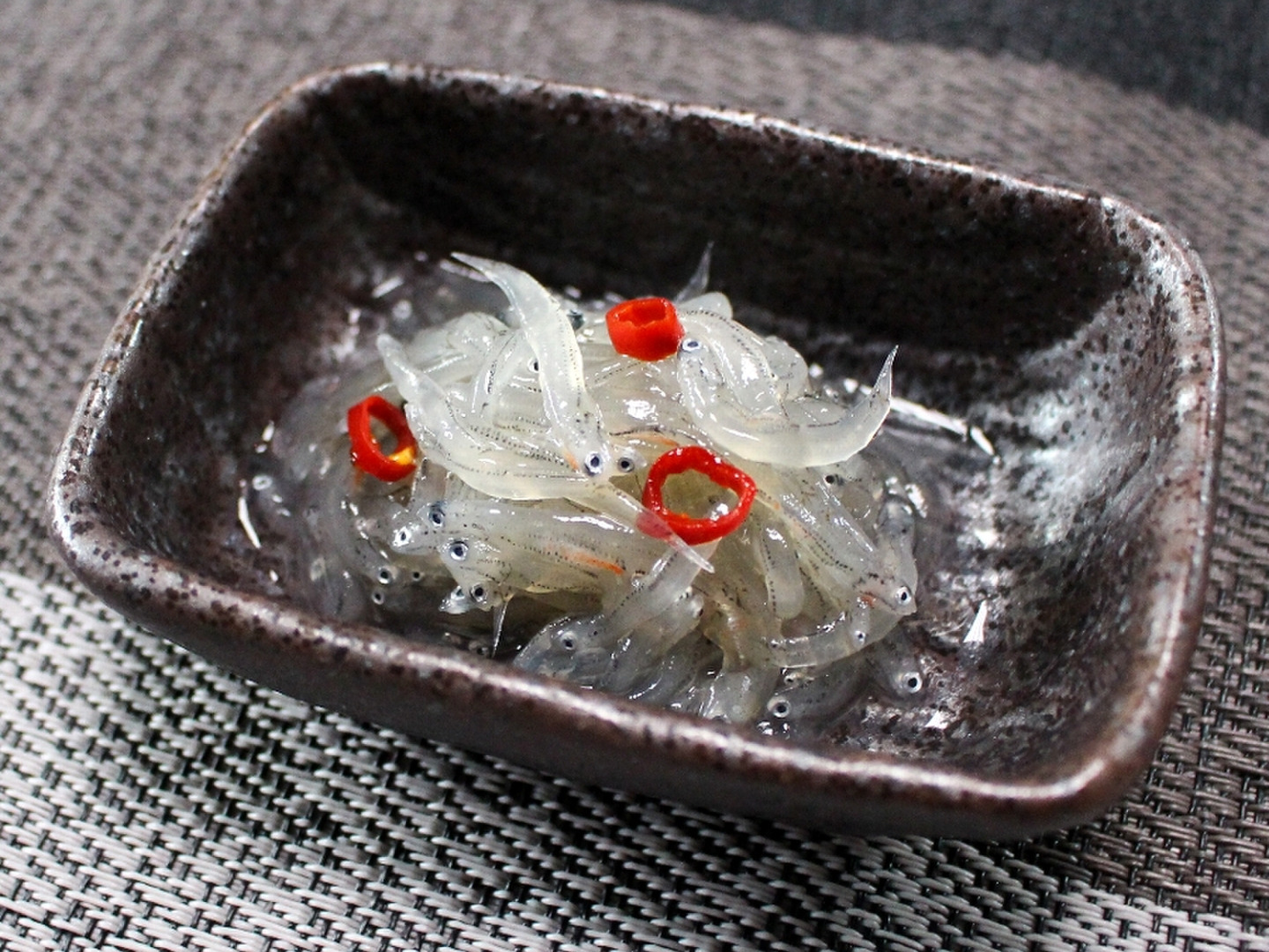 ●沖漬けのように風味深い味わいに仕上げた生シラスです。見た目は生シラスと変わらず透明ですが、しっかりと漬け込んで味付けしています。