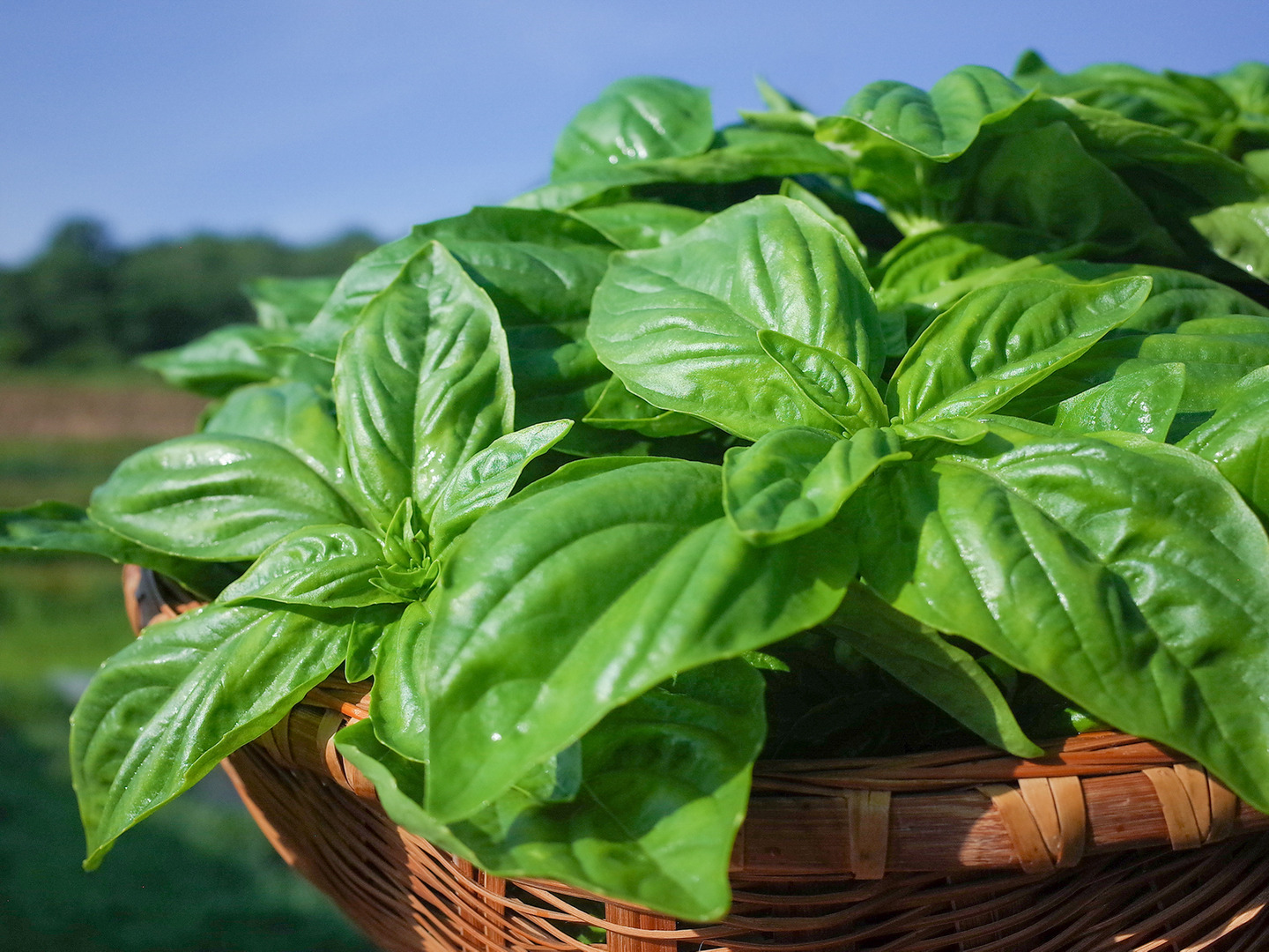 晴れの国、岡山の恵まれた気候で育てた岡山産のフレッシュなスイートバジルです。
