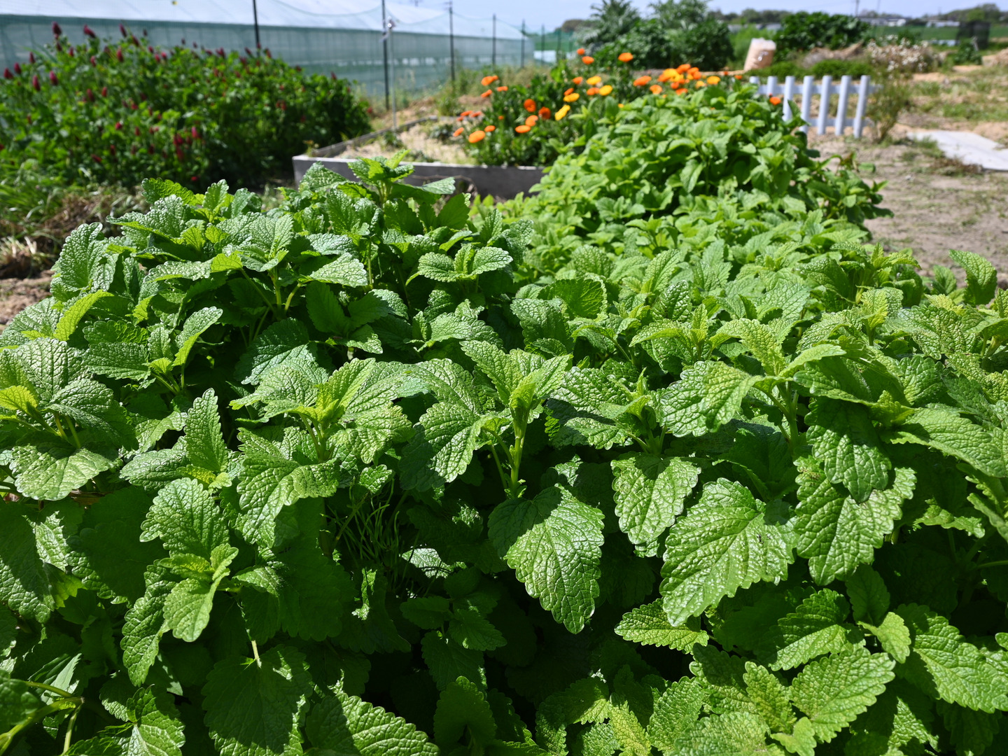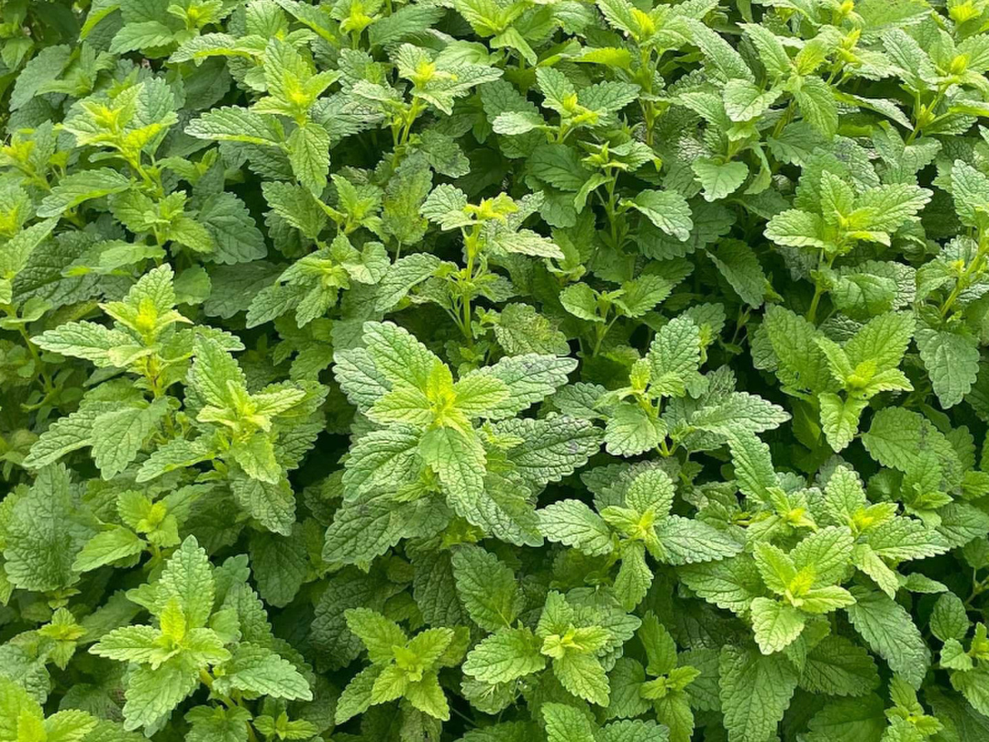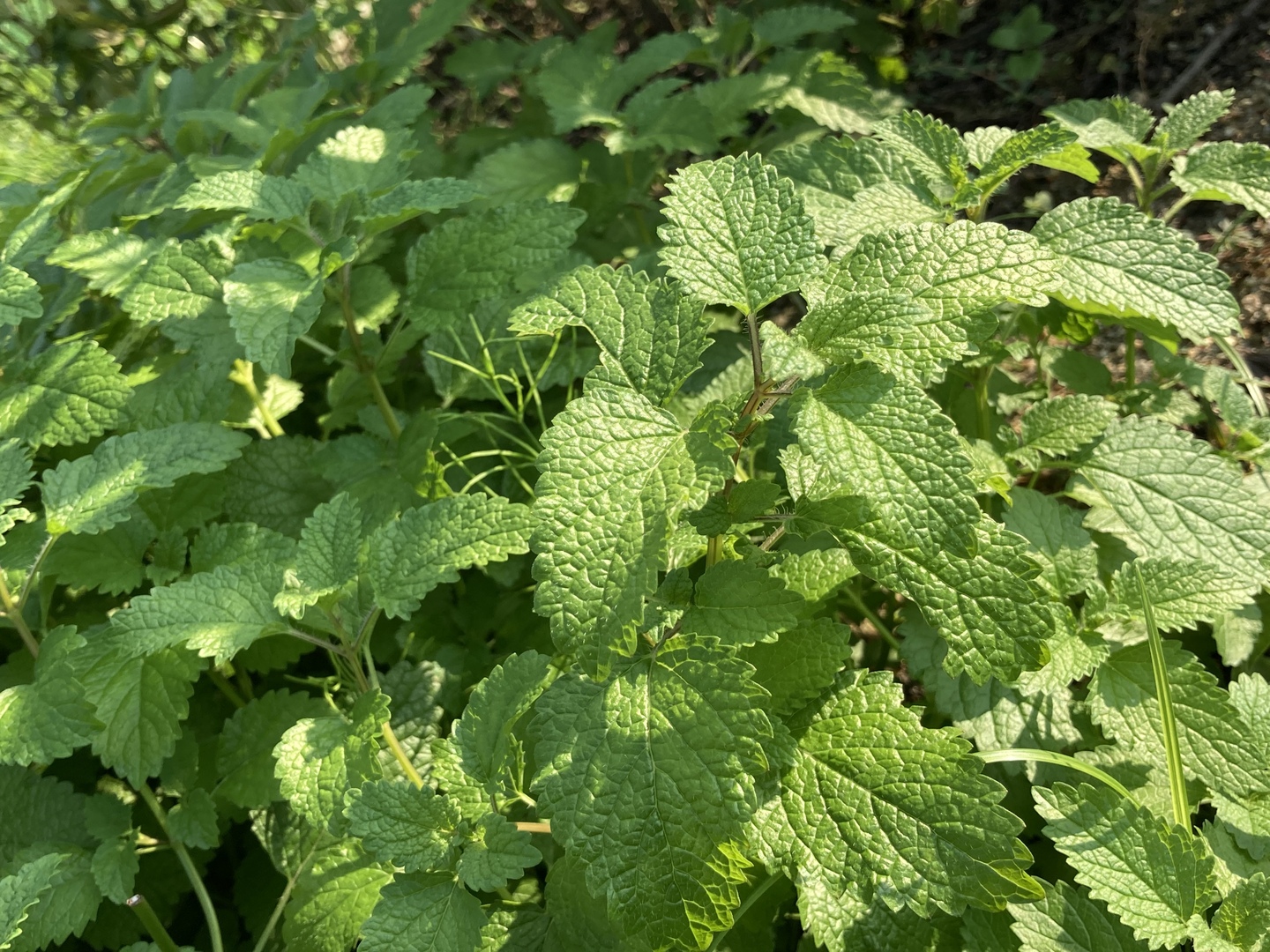 生のレモンバームの葉を茎付きで15センチ前後にカットして