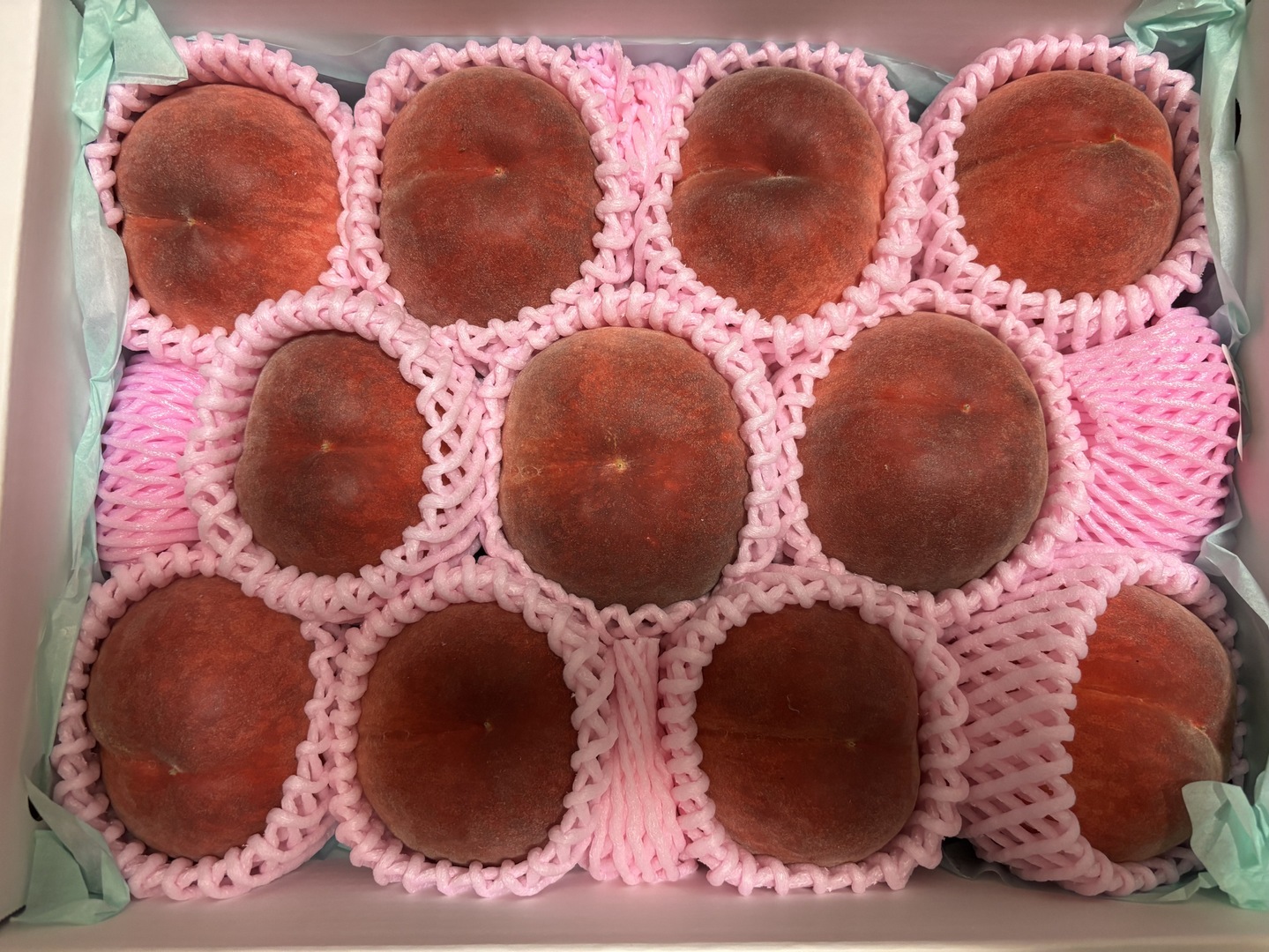 ※桃の実が茶色くなっている場合がございますが、完熟桃に見られる現象で傷みではございませんのでそのままお召し上がりいただけます。