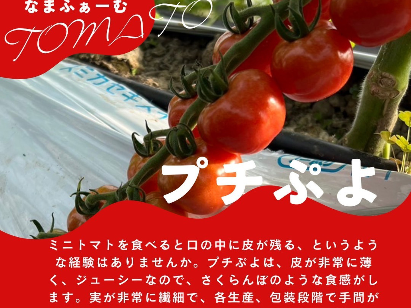 プチぷよ。一般的なプチトマトは噛んだ瞬間に皮の厚みを感じますが、プチぷよは口に入れるとすぐにはじけてしまう感覚。そして中からジューシーな果肉と果汁があふれ出てきます。つやつやの薄皮で、まるで高級さくらんぼのような実は繊細で、手間がかかるため生産している農家も少なく、通常の流通ルートには乗りにくいため、普通のスーパーではお目にかかれません。