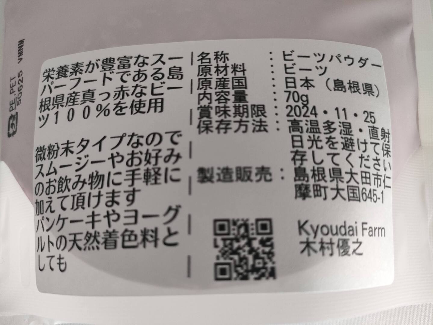 内容 ビーツパウダー70gとドライビーツ30gセット(農薬化学肥料不使用)