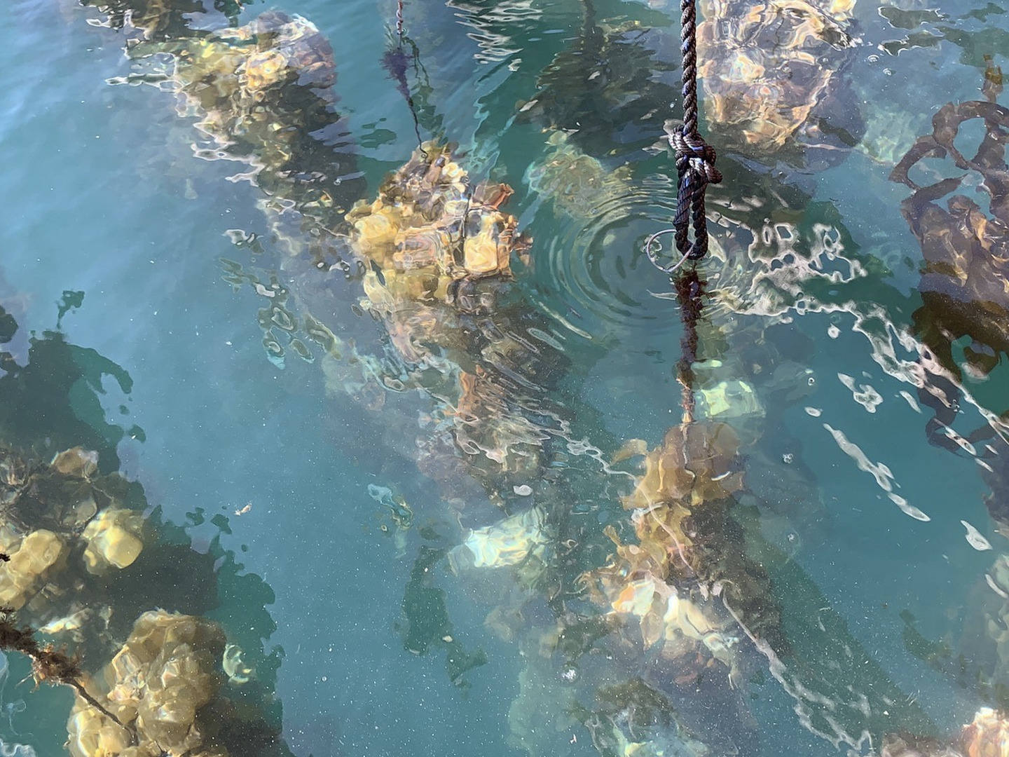沖合にある牡蠣筏(イカダ)で水深15mある海域で自然のままの状態で養殖されています。水揚げされた岩牡蠣は24時間以上紫外線殺菌された海水の水槽で循環し、毎月成分検査を実施しております。