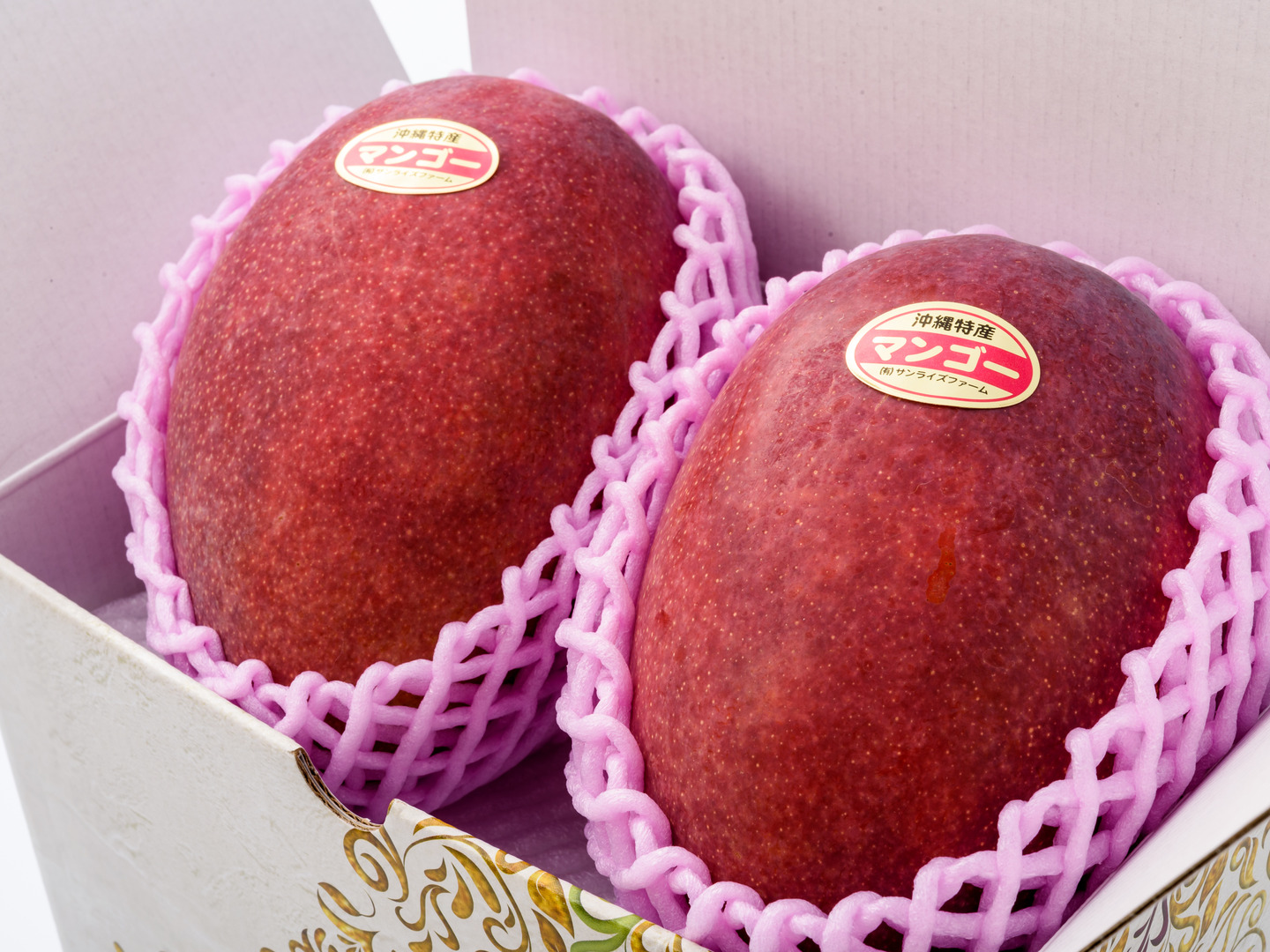 沖縄県本島東海岸に位置する宜野座村の豊かな自然と太陽の下で育ったサンライズファームのマンゴーは、しっかりとした甘さと、なめらかな食感、濃厚な風味が特徴です。