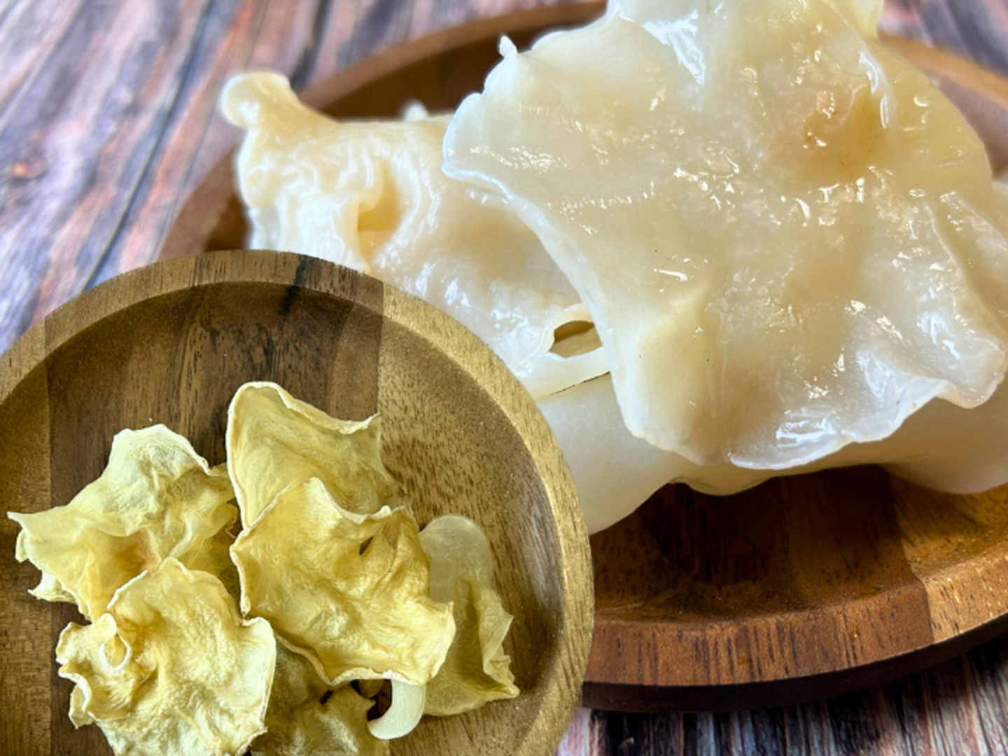 【おためし・白あらげきくらげ8g×3】高知県地場産業大賞「奨励賞」受賞。高知県産白あらげきくらげホールタイプ8g×3袋。2023年も清流仁淀川の恵みが育んだ白色で肉厚、プリプリの食感をお届け。
