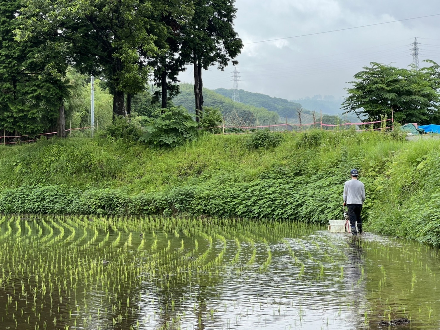 村内で農薬不使用・有機肥料栽培を推進する農業生産法人の指導を仰ぎ、お米づくりを行いました。