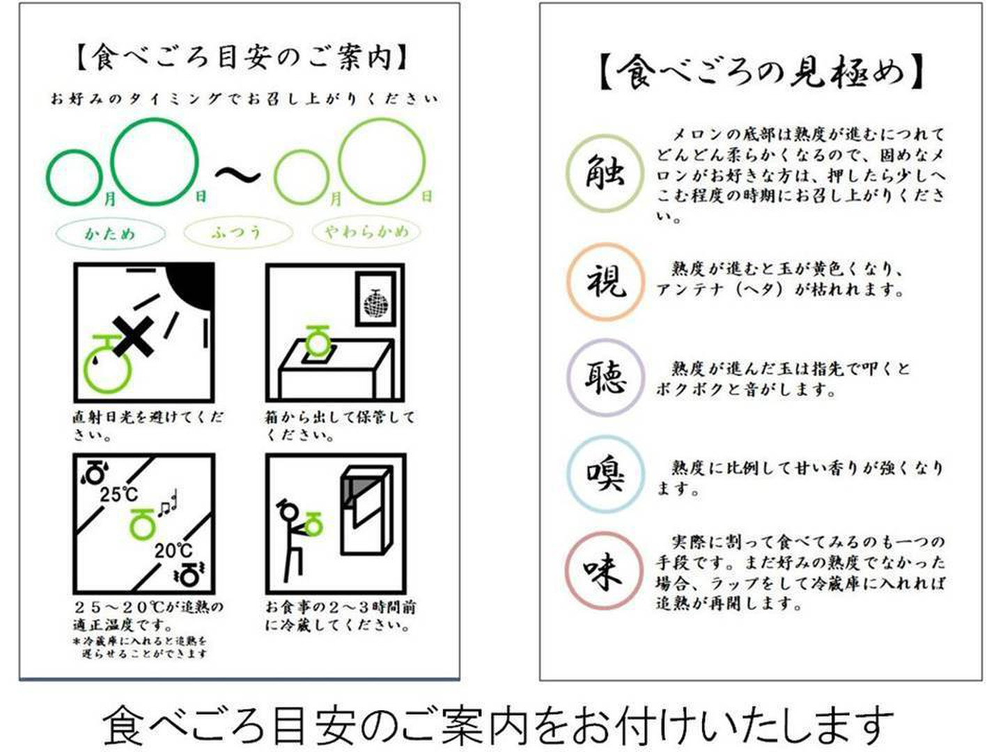 ・食べごろの目安、追熟方法、熟度の見分け方のガイドを封入させていただきますので、安心してお召し上がりいただけます。
