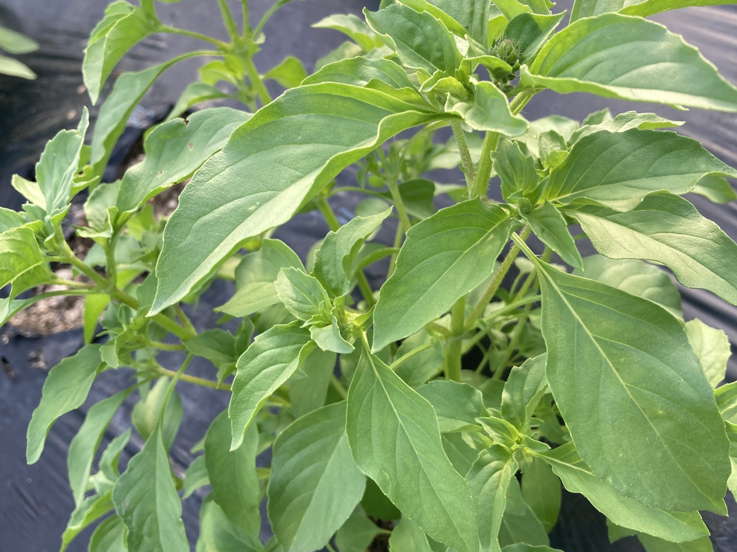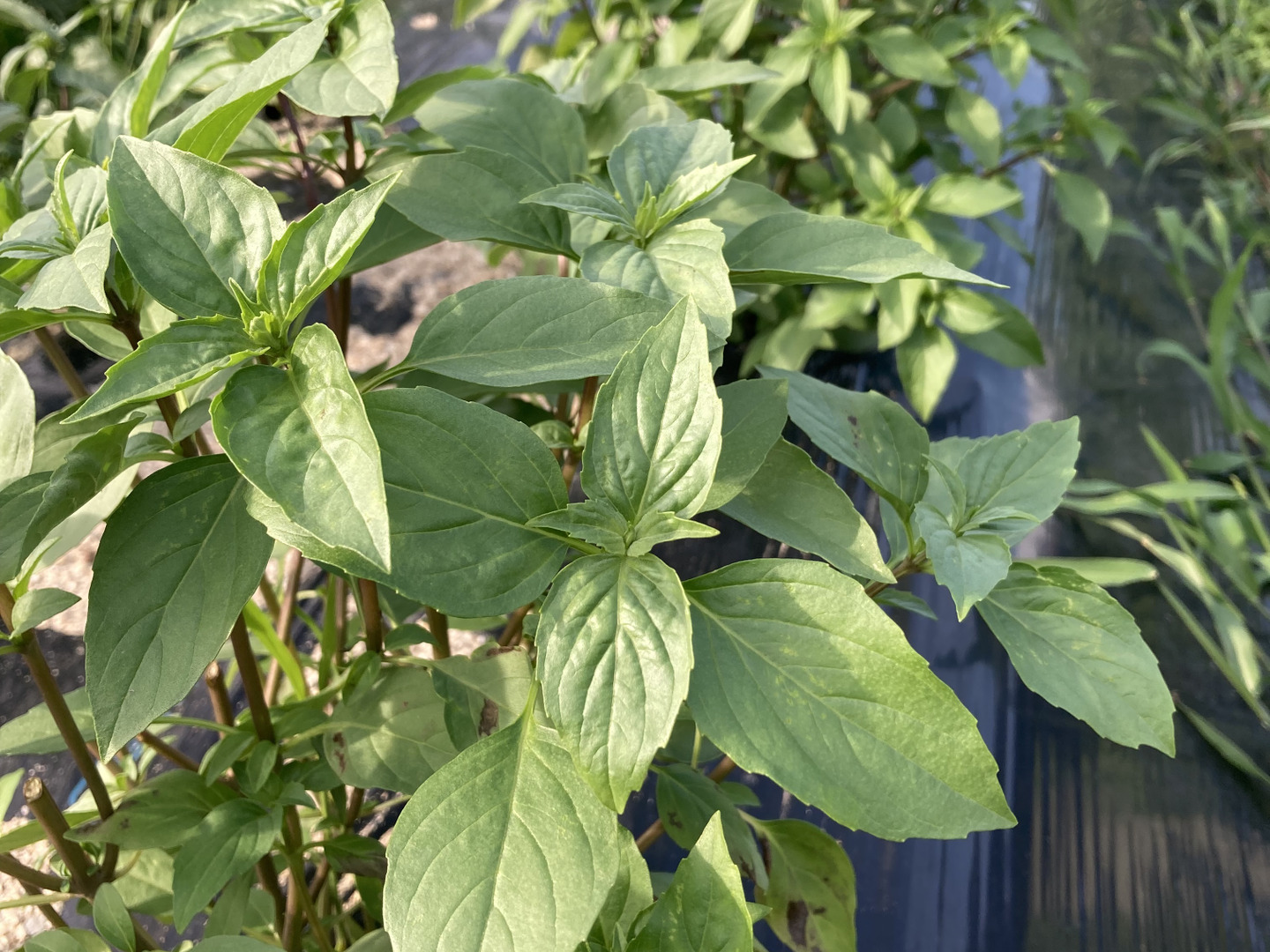 路地栽培で太陽の陽と微生物の力を借りて育った元気なバジルです。