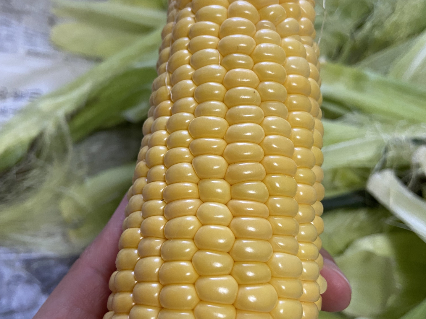 できたての茹でたとうもろこしの、