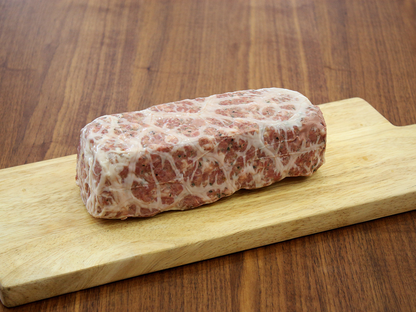 - ナイフを入れると粗挽きのお肉がホロッと崩れます
