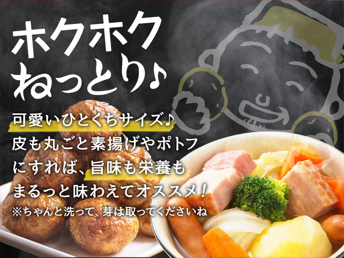 ひとくちサイズの男爵芋なので、皮付きのままポトフやひとくちフライドポテトに最適です!