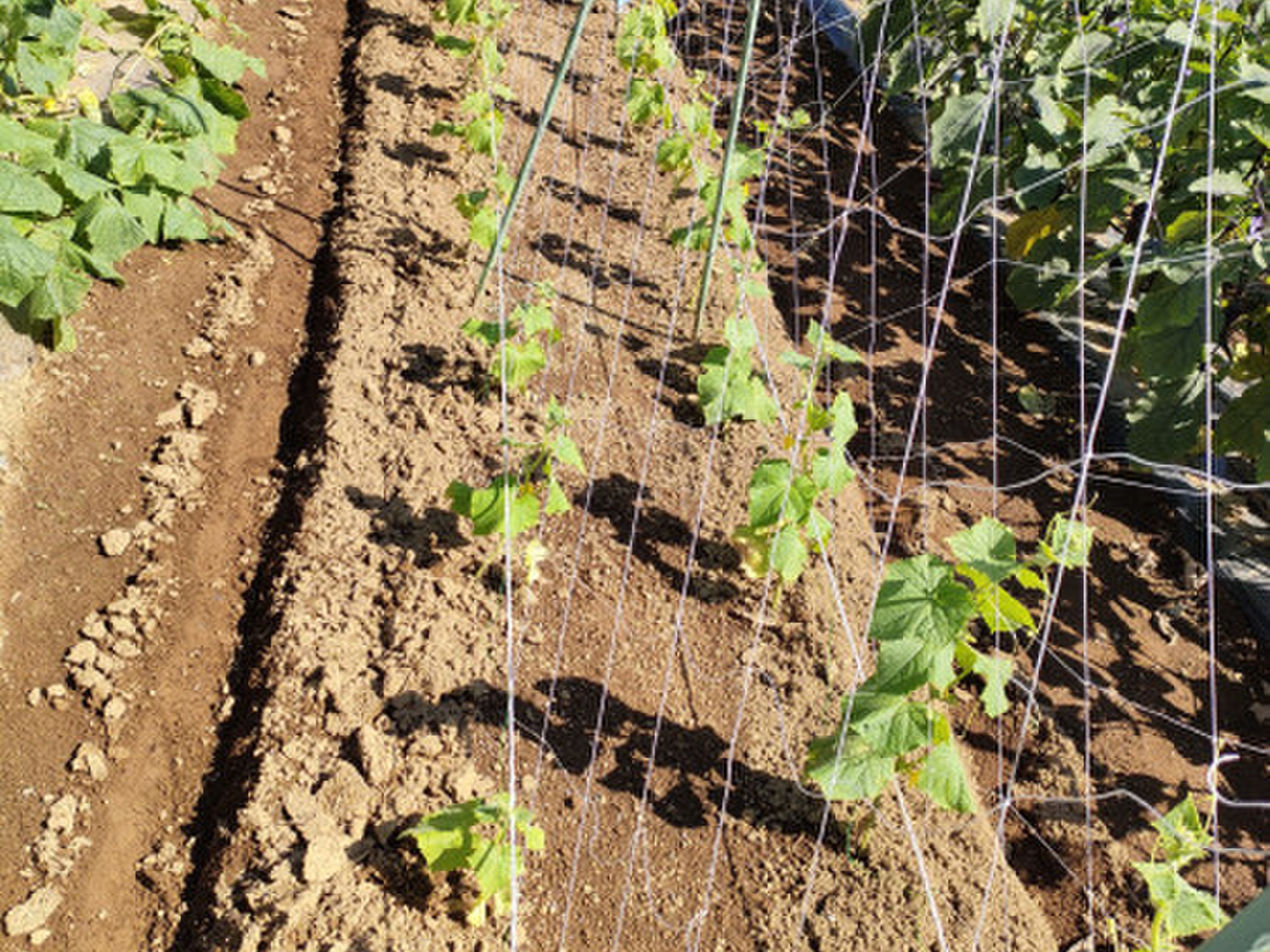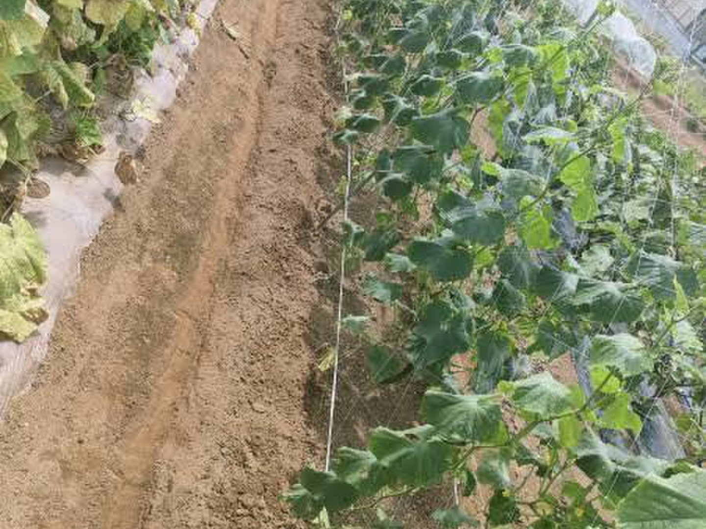 胡瓜づくりのこだわりは、土づくりから始まります。米ぬかや、もみ殻を使った有機堆肥をたっぷりと。7 月には約 1 か月かけて、太陽光で土壌消毒を行い、胡瓜に最適な土を作っていきます。