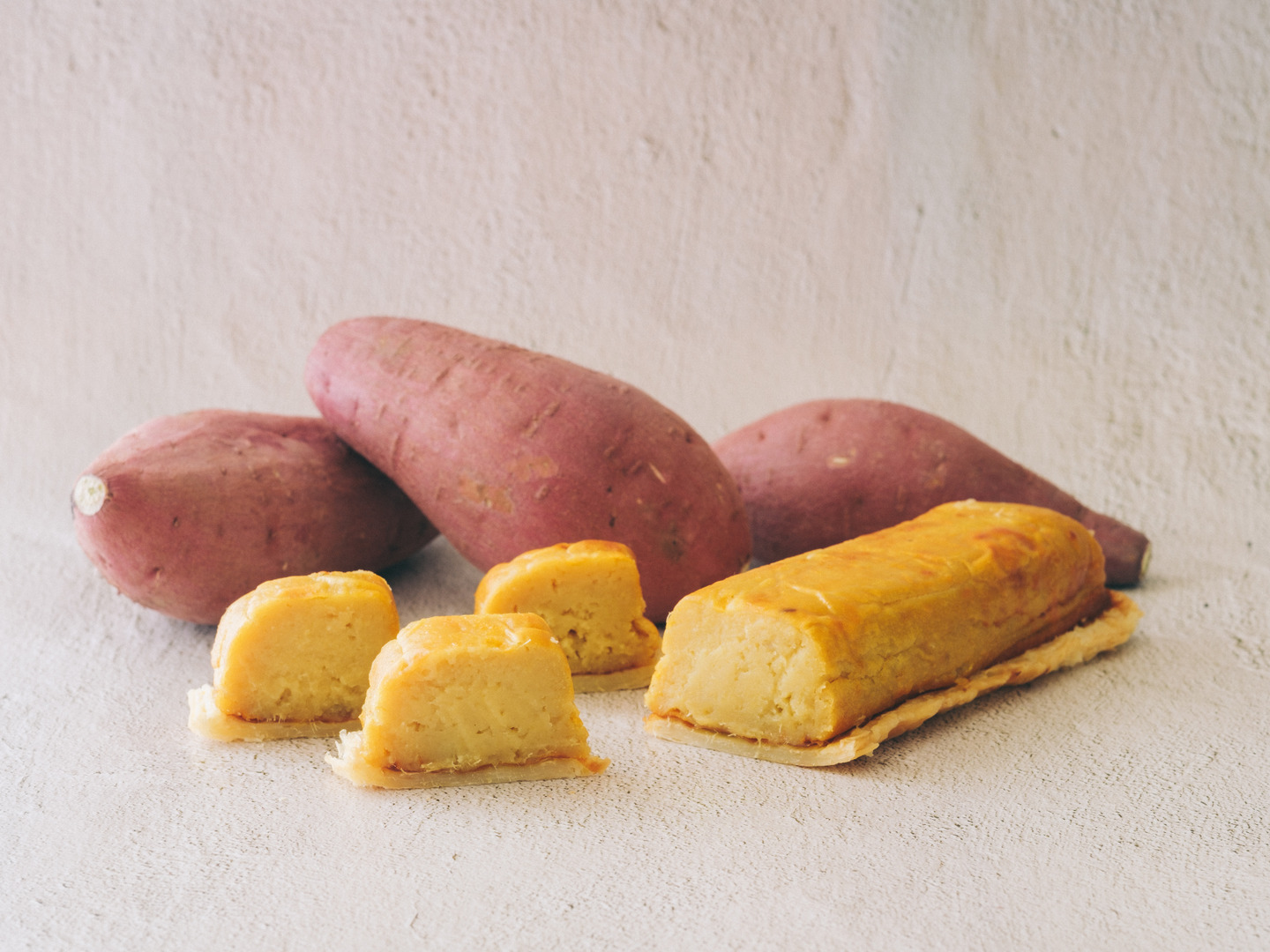 ・収穫後45日以上熟成させた特別なさつまいも(紅はるか)の焼き芋を原料にして、丁寧に裏ごしを行いサクサクのパイ生地に乗せて滑らかな濃厚スイートポテト