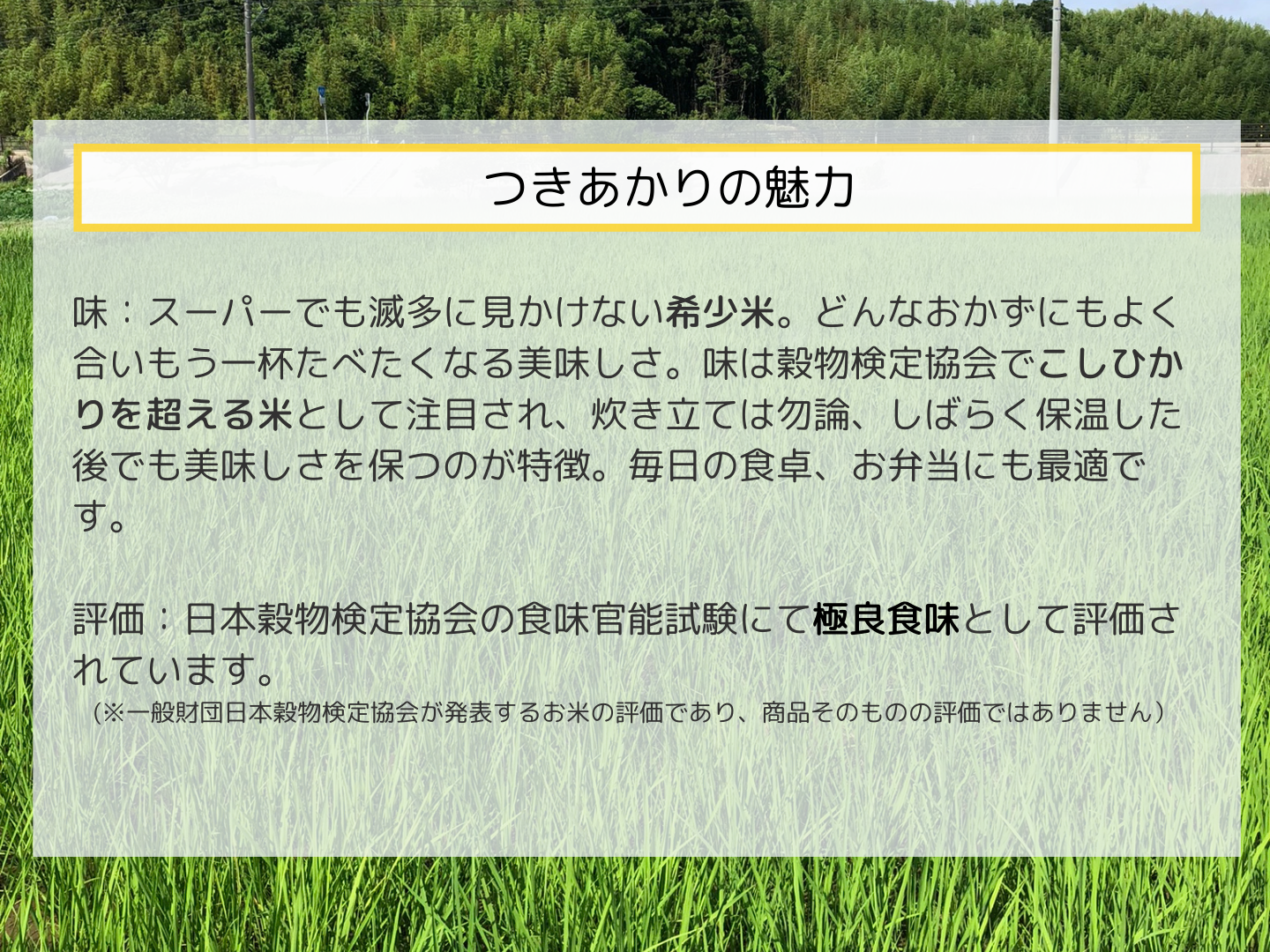 お米のいい香り、一粒一粒の食べ応え、どんなおかずにもよく合いもう一杯たべたくなる美味しさを持つ希少米つきあかり